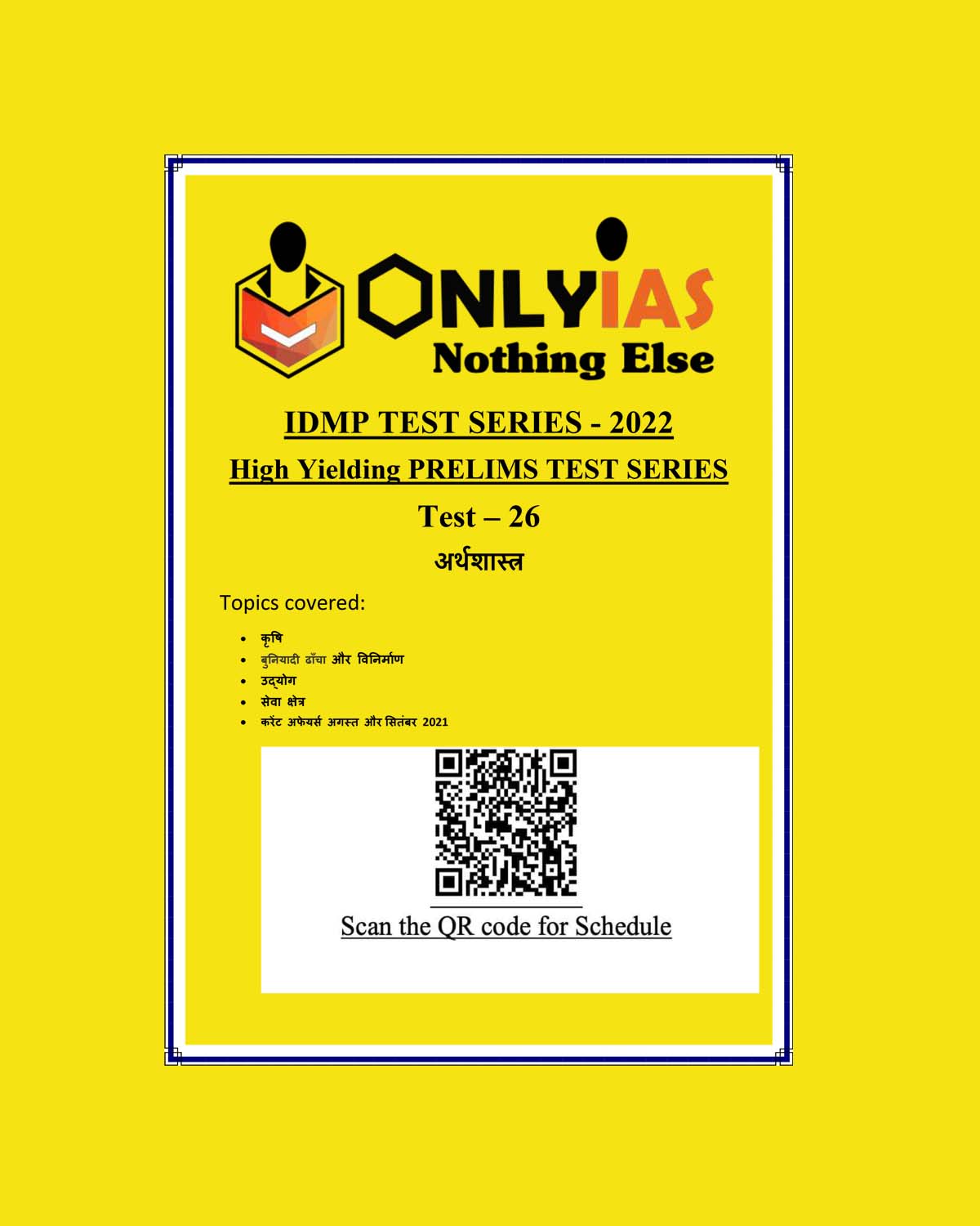 ONLY IAS HINDI 2022 IDMP TEST-26 (अर्थशास्त्र) HINDI MEDIUM –(BLACK & WHITE)
