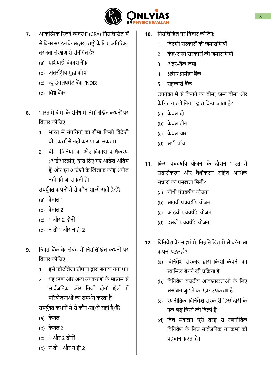 / ONLY IAS HINDI 2025 TEST-14 INDIAN ECONOMY PART-2 2025 FINAL (HINDI) {BLACK AND WHITE}