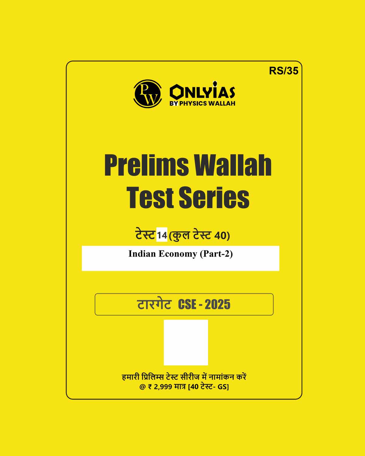 ONLY IAS HINDI 2025 TEST-14 INDIAN ECONOMY PART-2 2025 FINAL (HINDI) {BLACK AND WHITE} quantity