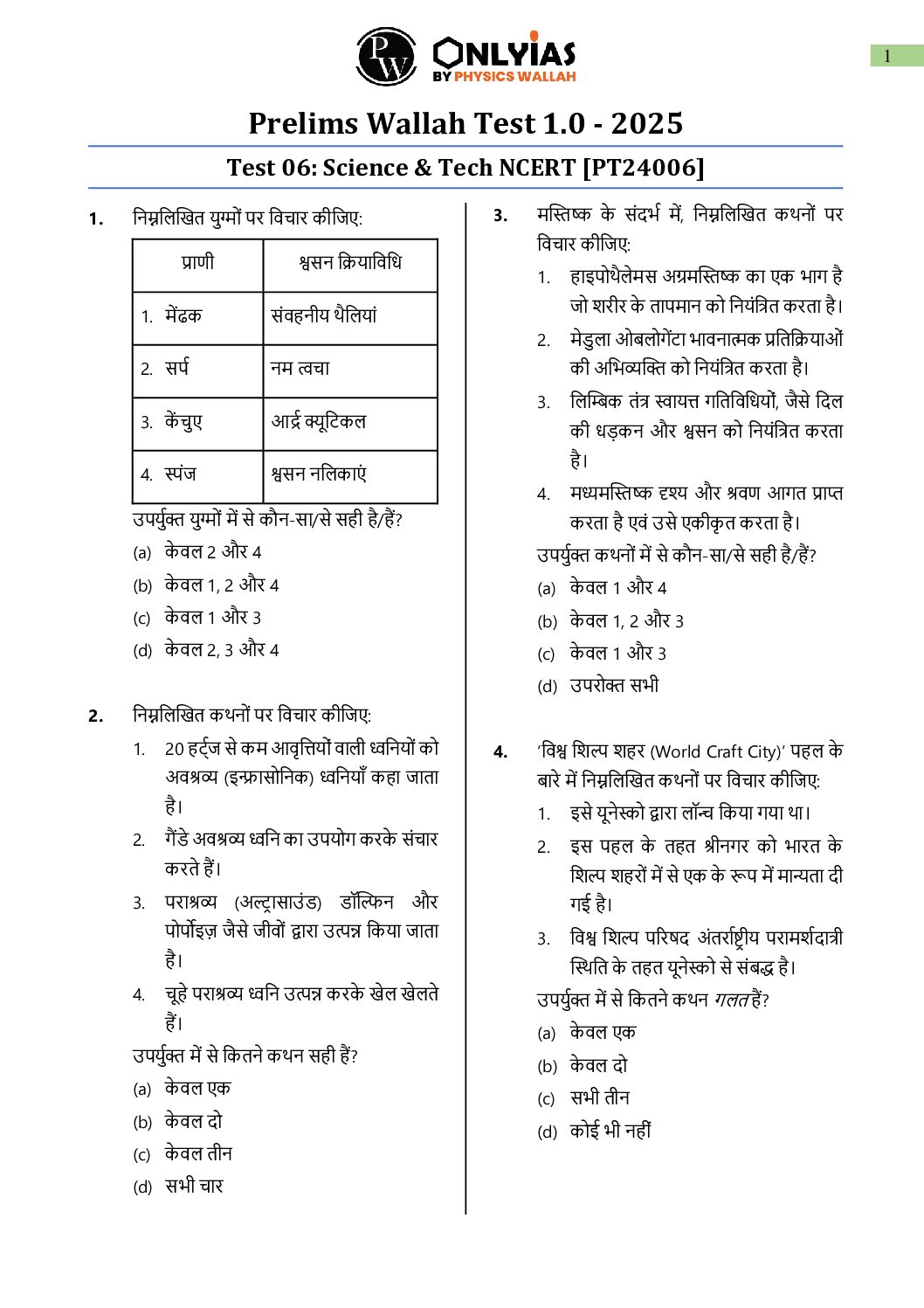 / ONLY IAS HINDI 2025 TEST-6 SCIENCE&TECH (NCERT) 2025 FINAL (HINDI) {BLACK AND WHITE}