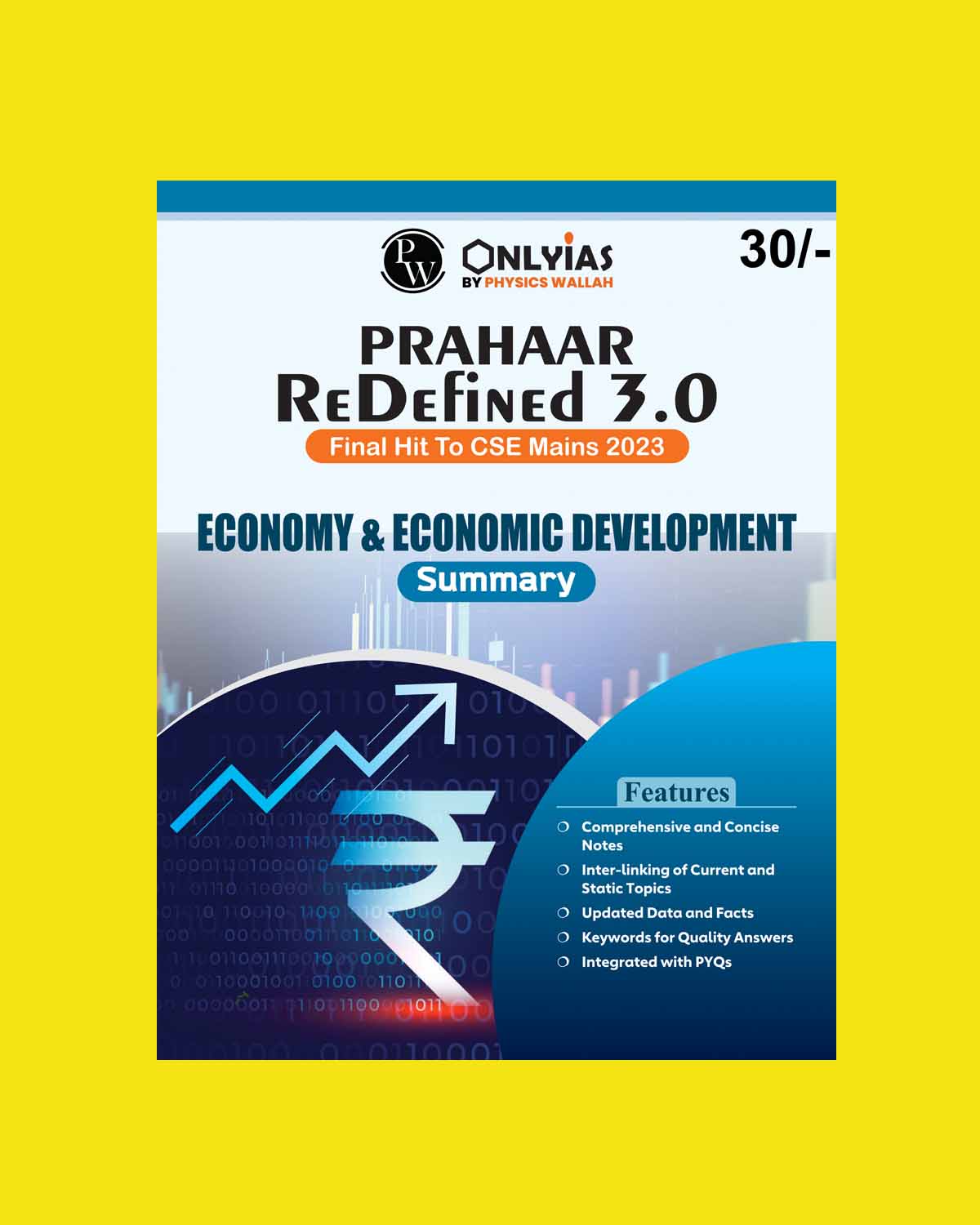 / ONLY IAS MAINS 2023 PRAHAAR 3.0 ECONOMY & ECONOMIC DEVELOPMENT (SUMMERY) ENGLISH MEDIUM 2023 (BLACK & WHITE)