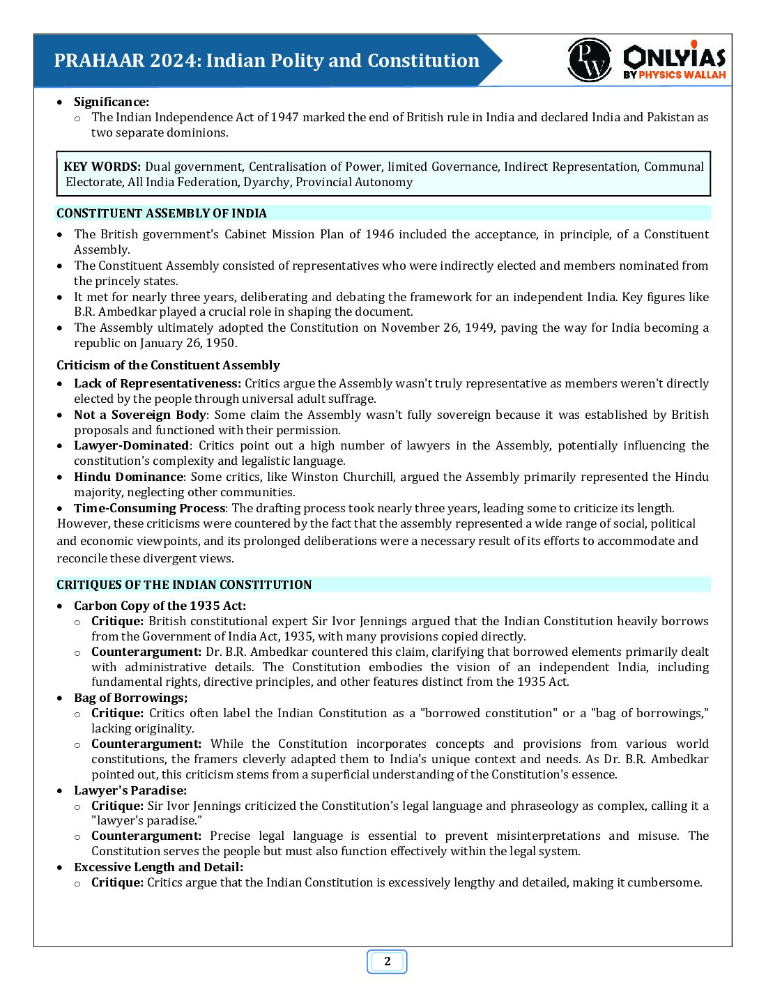 ONLY IAS PRAHAAR MAINS 2024 INDIAN POLITY AND CONSTITUTION 2024 FINAL {ENGLISH} {BLACK AND WHITE}
