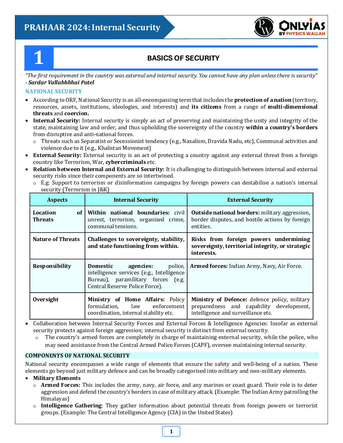 / ONLY IAS PRAHAAR MAINS 2024 INTERNAL SECURITY 2024 FINAL {ENGLISH} {BLACK AND WHITE}