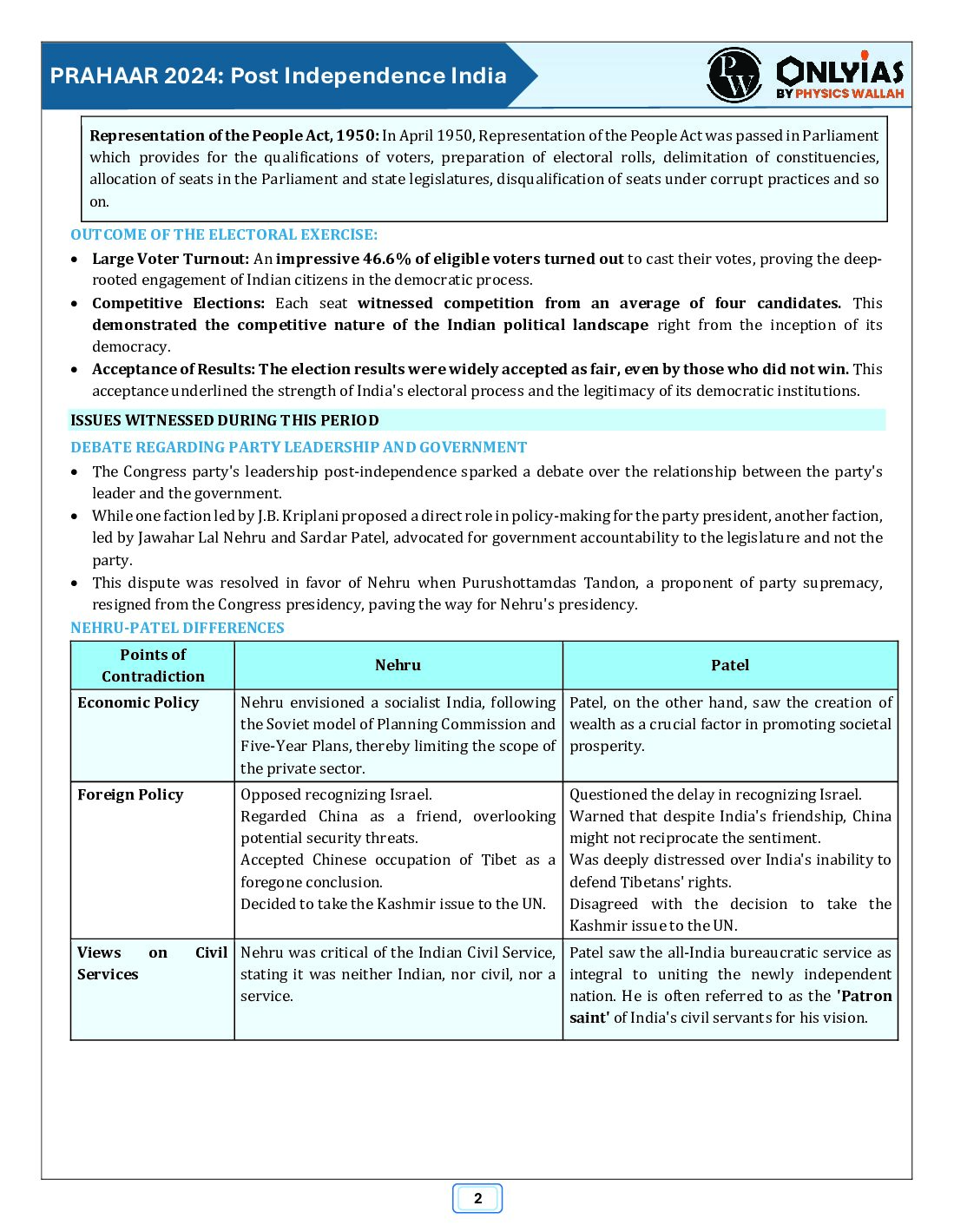 / ONLY IAS PRAHAAR MAINS 2024 POST INDEPENDENCE INDIA 2024 FINAL {ENGLISH} {BLACK AND WHITE}