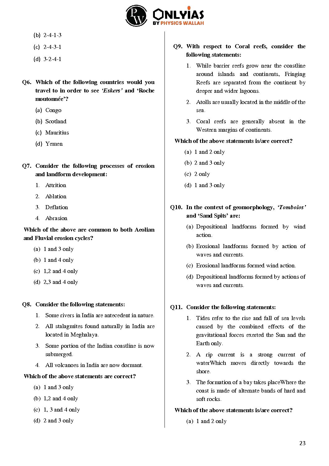 / ONLY IAS PRYAYAS GEOGRAPHY PRACTICE WORKBOOK COMPLETE GEOGRAPHY THROUGH MCQS (QUESTION BOOKLETS + ANSWERS 470 +MCQS) BLACK & WHITE