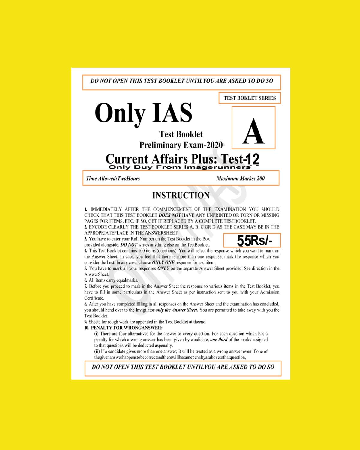 ONLY IAS TEST BOOKLET 2020 CURRENT AFFAIRS PLUS TEST-12