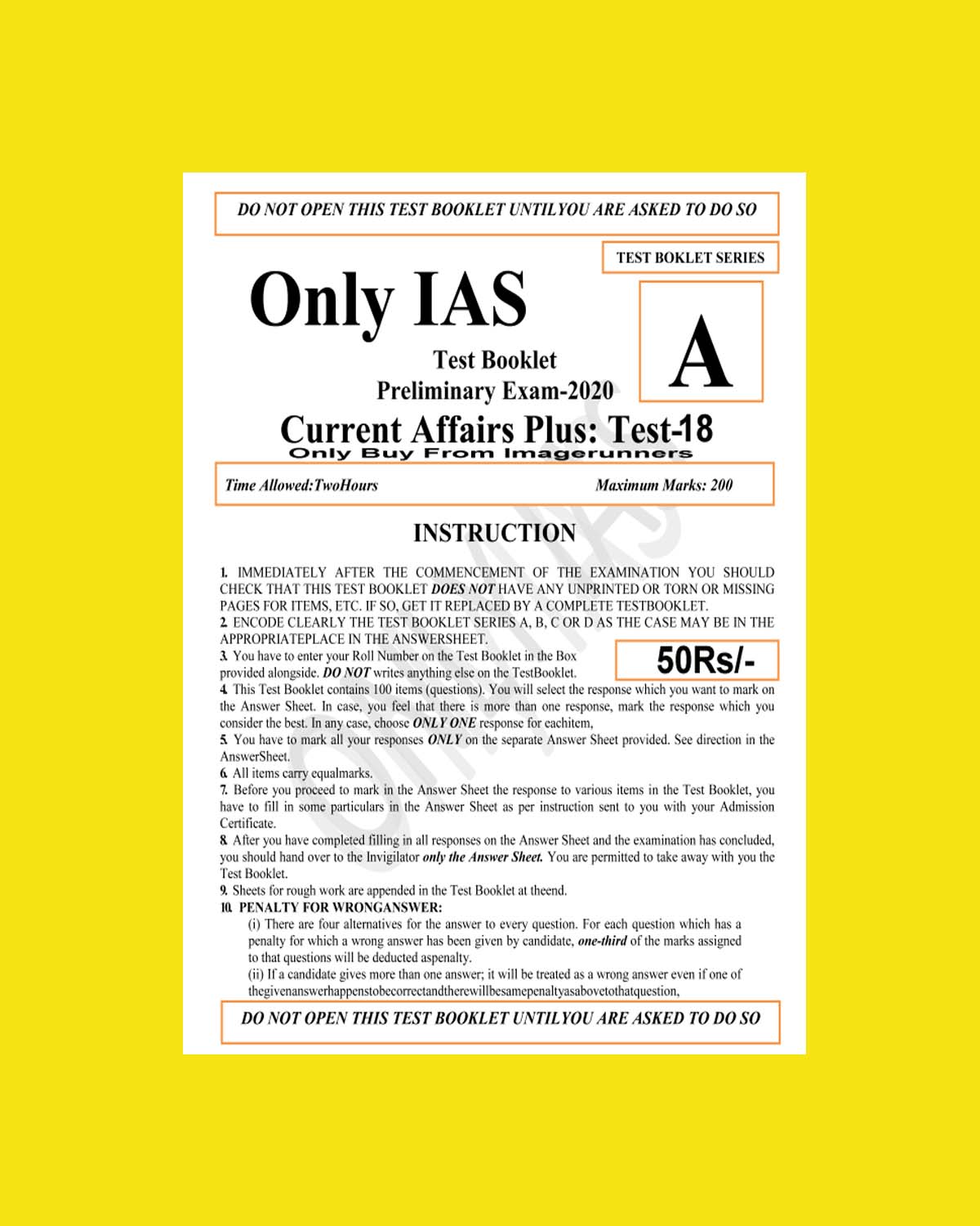 ONLY IAS TEST BOOKLET 2020 CURRENT AFFAIRS PLUS TEST-18