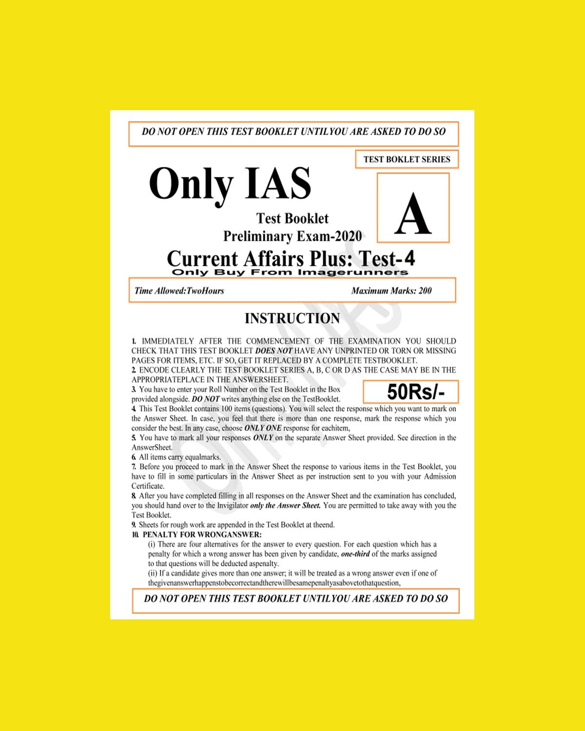 ONLY IAS TEST BOOKLET 2020 CURRENT AFFAIRS PLUS TEST-4