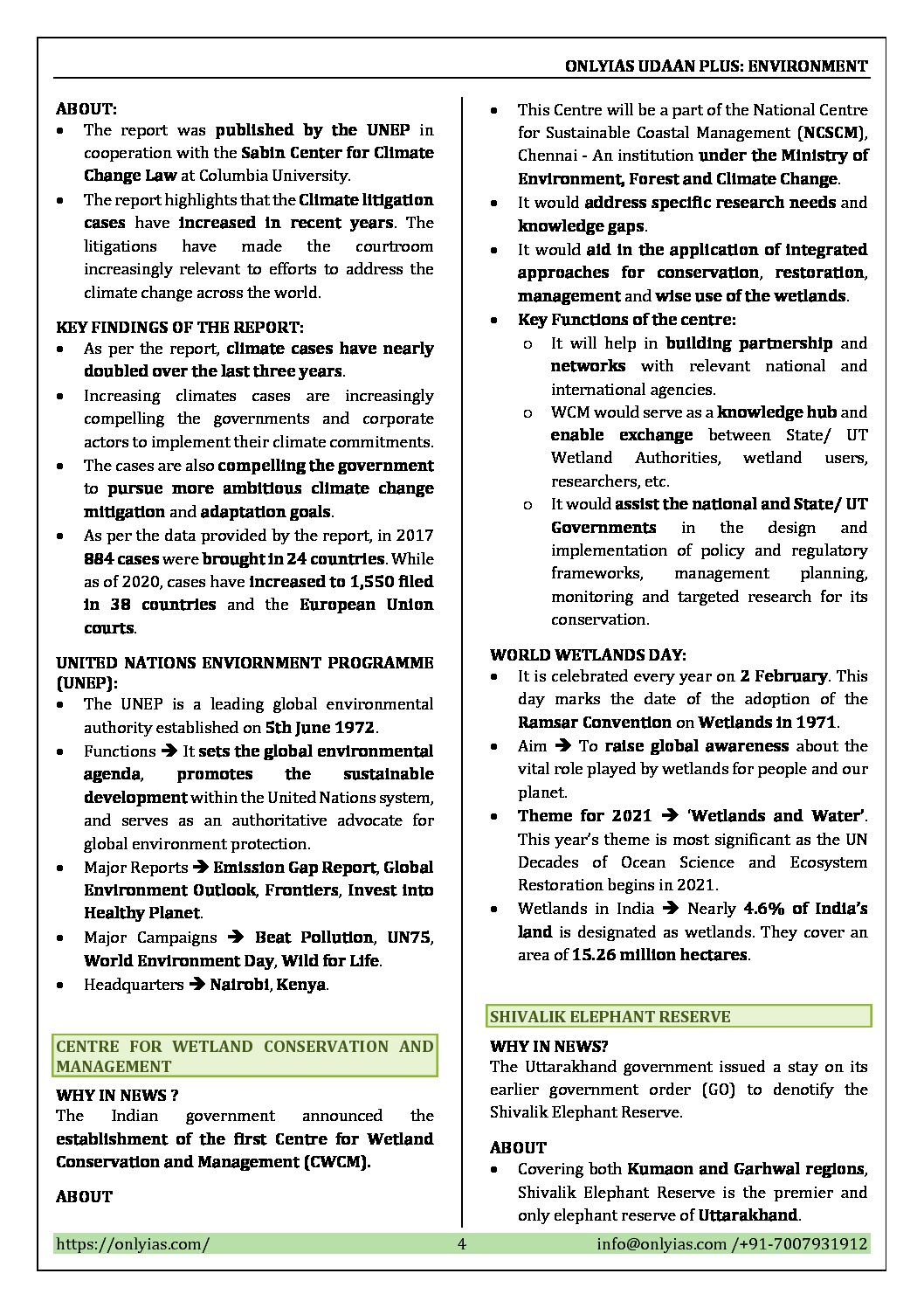 / ONLY IAS UDAAN PLUS 500 ENVIRONMENT & ECOLOGY CURRENT AFFAIRS FEB TO MAY 2021