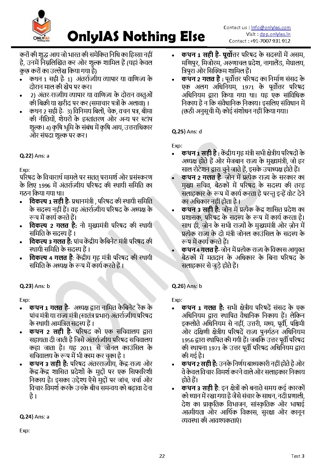 ONLYIAS 2022 IDMP TEST SERIES -2022-HIGH YIELDING PRELIMS TEST SERIES TEST-03 (राजव्यवस्था) HINDI MEDIUM (BLACK & WHITE)