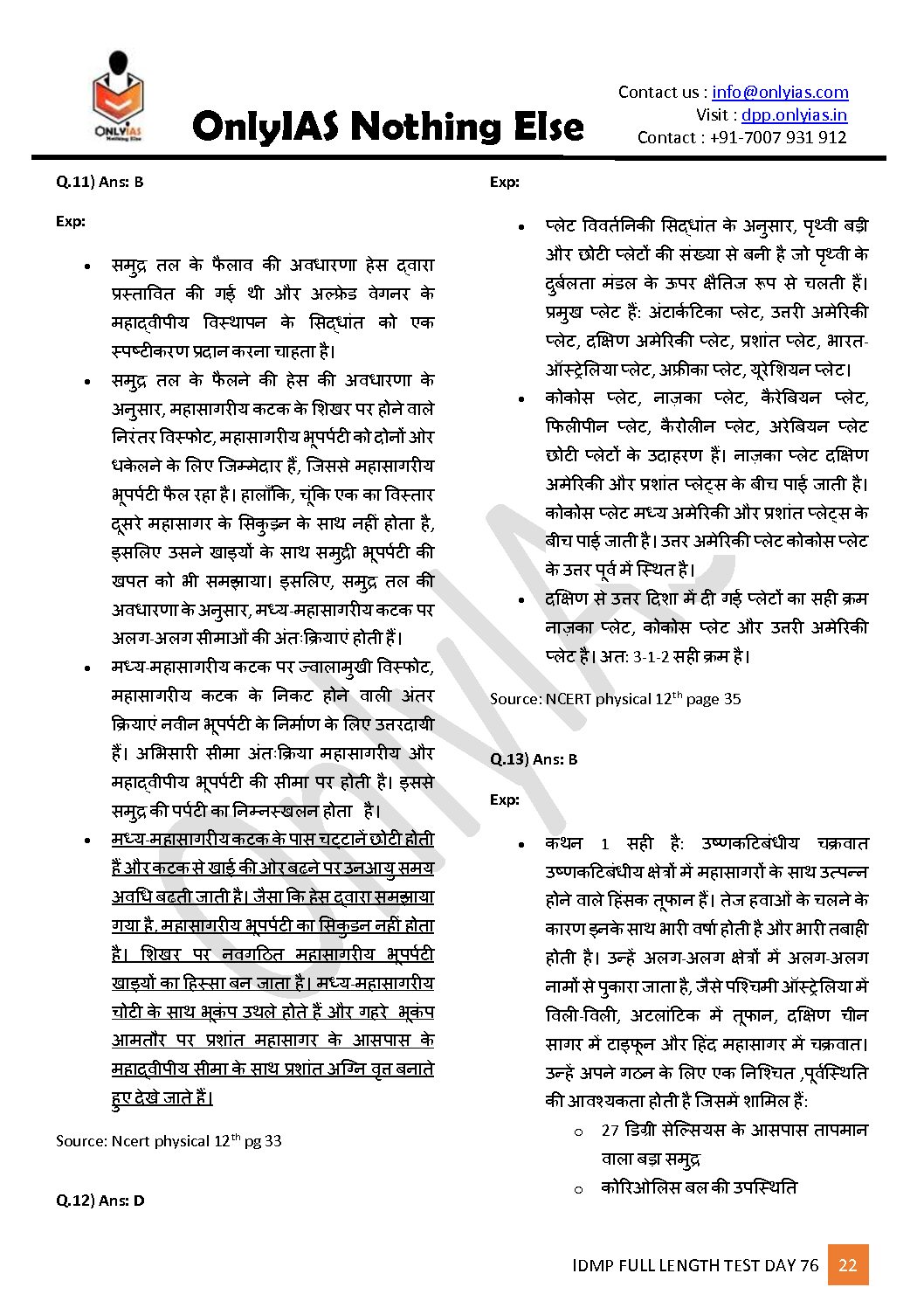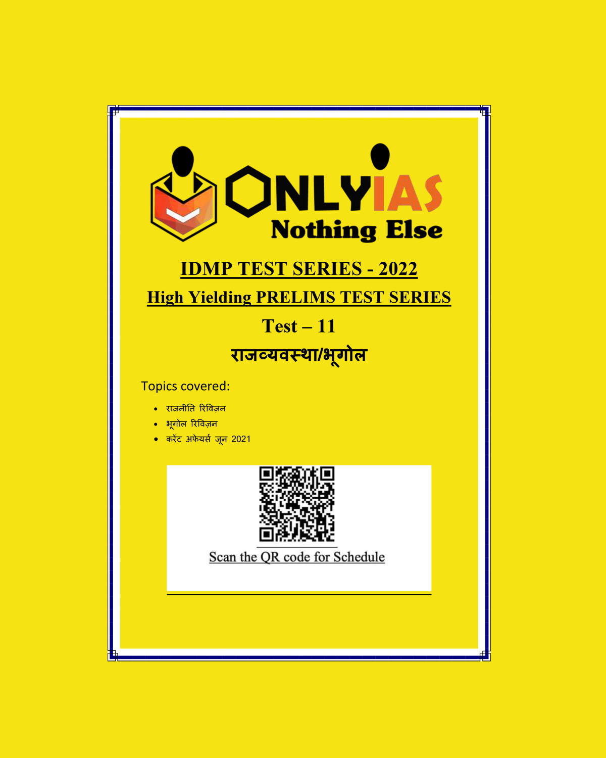 ONLYIAS 2022 IDMP TEST SERIES -2022-HIGH YIELDING PRELIMS TEST SERIES TEST-11 (राजव्यवस्था-भूगोल) HINDI MEDIUM (BLACK & WHITE)