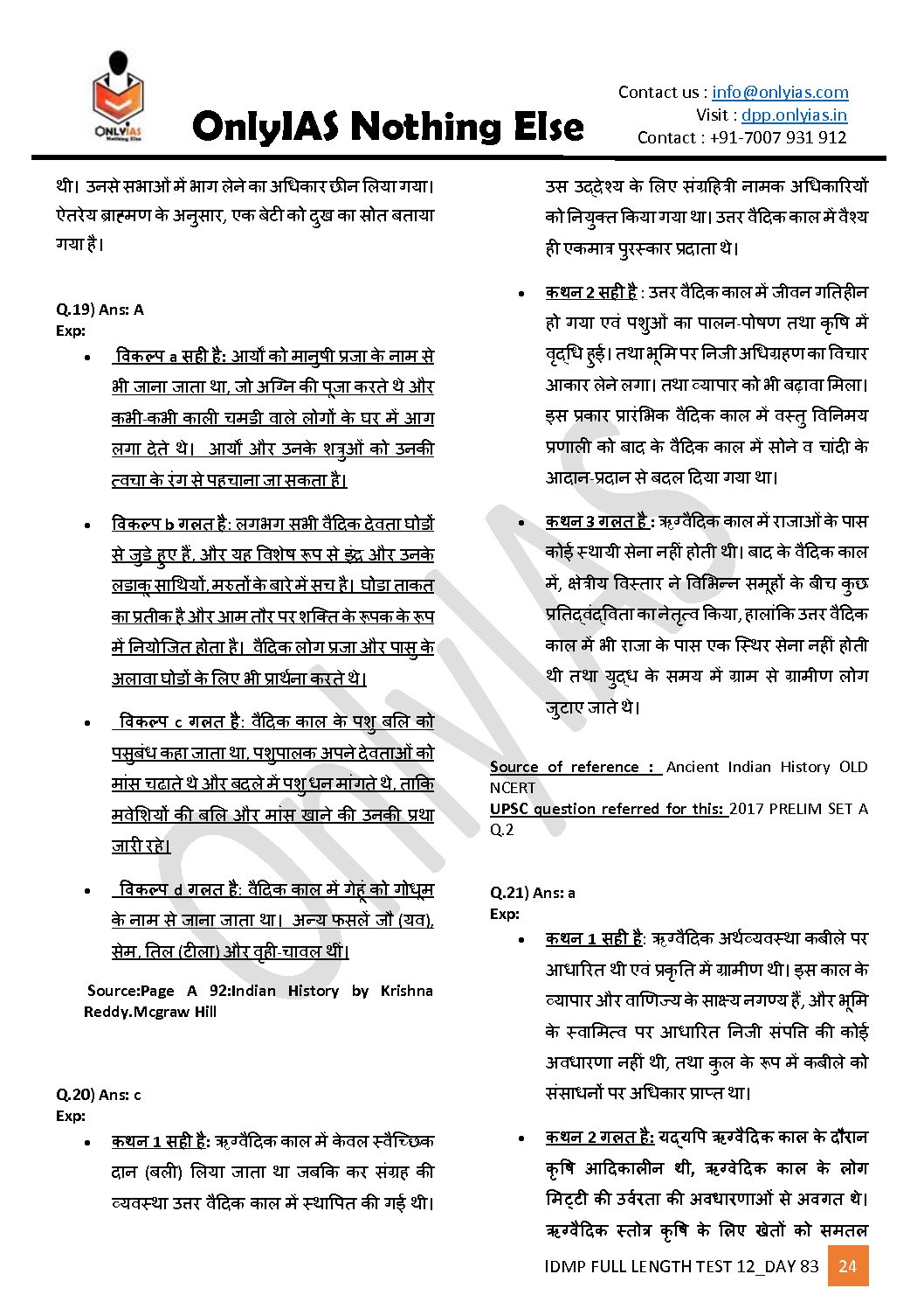 ONLYIAS 2022 IDMP TEST SERIES -2022-HIGH YIELDING PRELIMS TEST SERIES TEST-12 (प्राचीनइतिहास) HINDI MEDIUM (BLACK & WHITE)