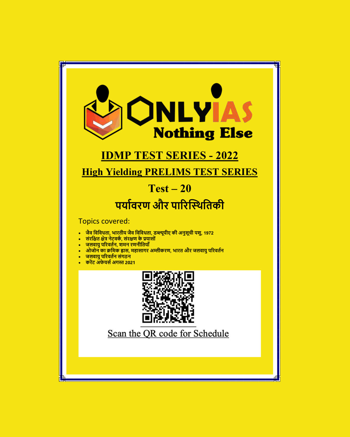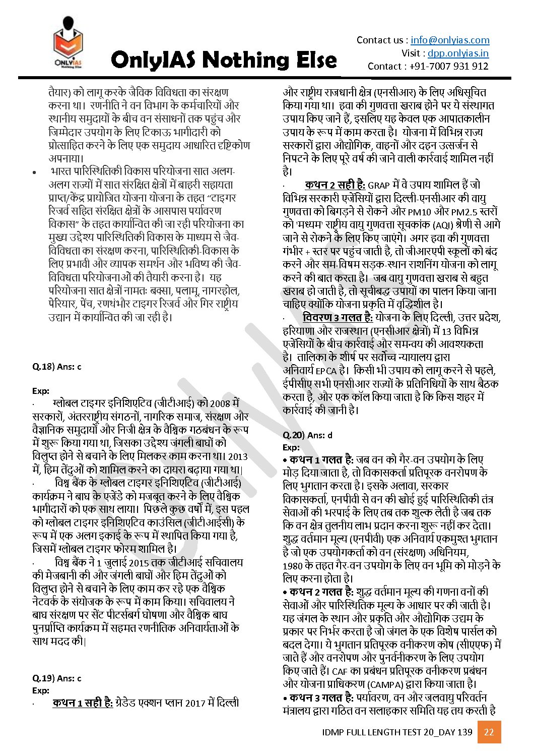 ONLYIAS 2022 IDMP TEST SERIES -2022-HIGH YIELDING PRELIMS TEST SERIES TEST-20 (पर्यावरणएवंपारिस्थितिकी) HINDI MEDIUM BLACK & WHITE