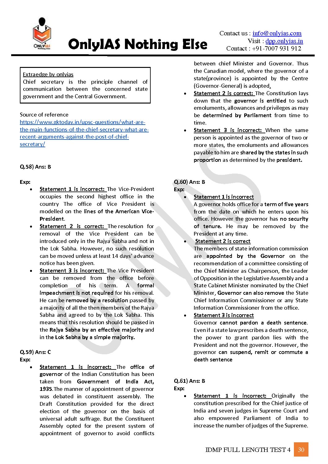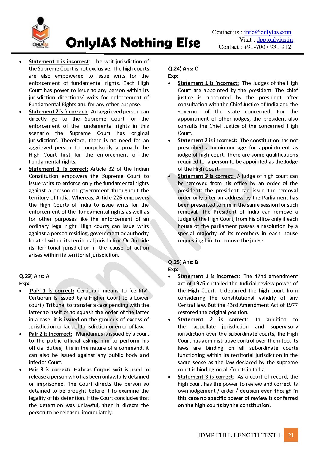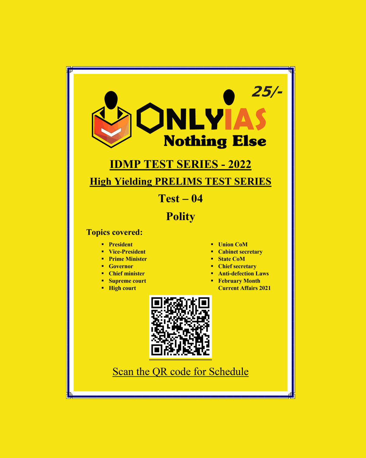 / ONLYIAS 2022 IDMP TEST SERIES -2022-HIGH YIELDING PRELIMS TEST SERIES TEST-4 (POLITY) (BLACK & WHITE)