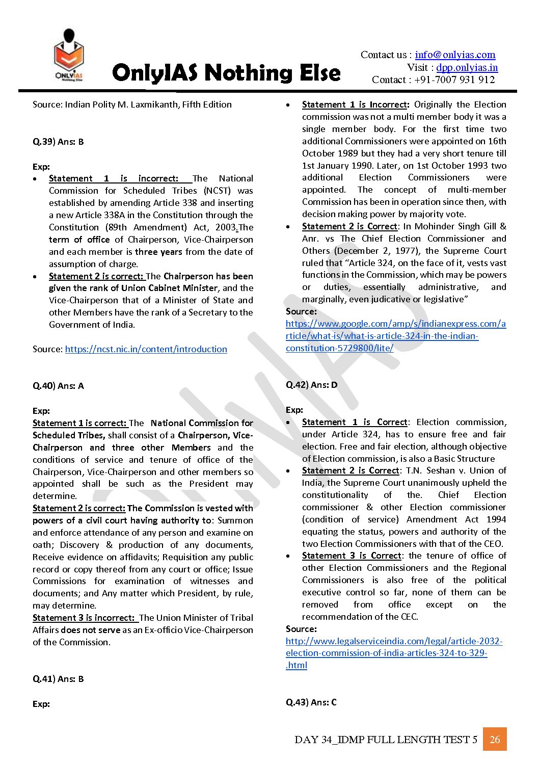 / ONLYIAS 2022 IDMP TEST SERIES -2022-HIGH YIELDING PRELIMS TEST SERIES TEST-5 (POLITY) (BLACK & WHITE)