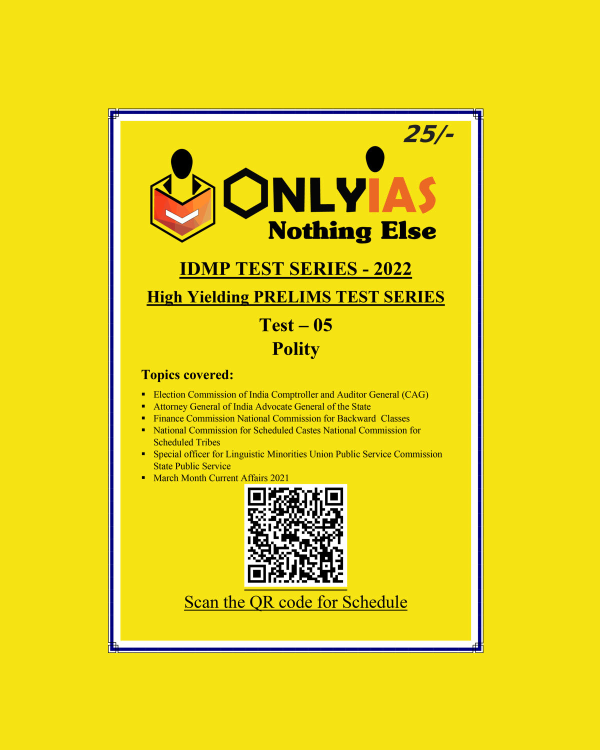 ONLYIAS 2022 IDMP TEST SERIES -2022-HIGH YIELDING PRELIMS TEST SERIES TEST-5 (POLITY) (BLACK & WHITE)