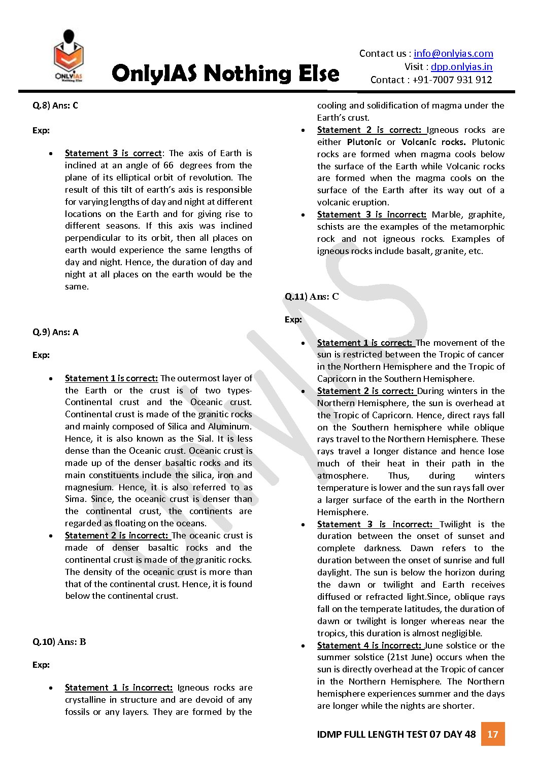 / ONLYIAS 2022 IDMP TEST SERIES -2022-HIGH YIELDING PRELIMS TEST SERIES TEST-7 (GEOGRAPHY) (BLACK & WHITE)