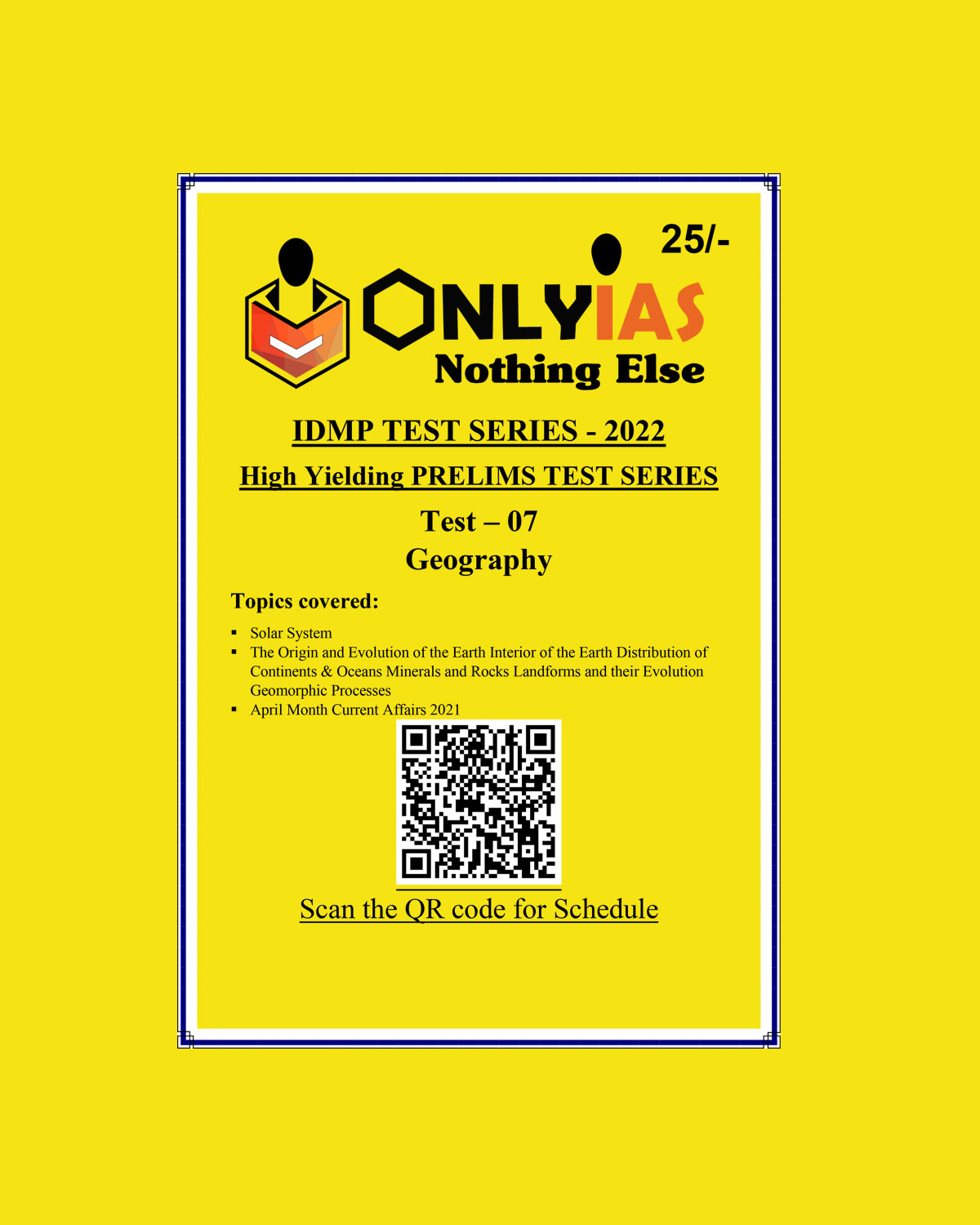 ONLYIAS 2022 IDMP TEST SERIES -2022-HIGH YIELDING PRELIMS TEST SERIES TEST-7 (GEOGRAPHY) (BLACK & WHITE)