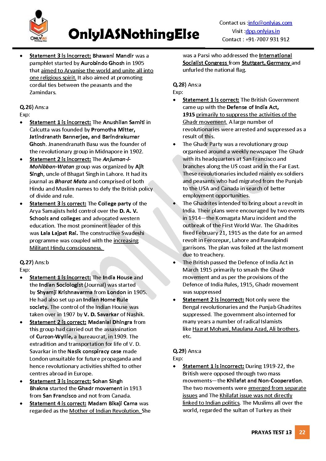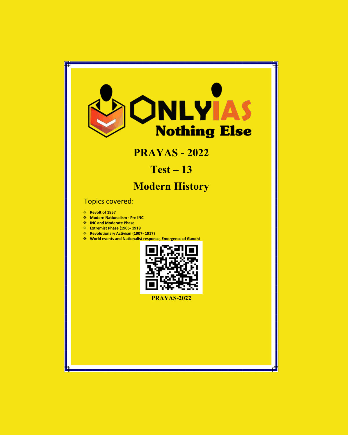 / ONLYIAS 2022 PRAYAS TEST -13 (MODERN HISTORY) (BLACK & WHITE)