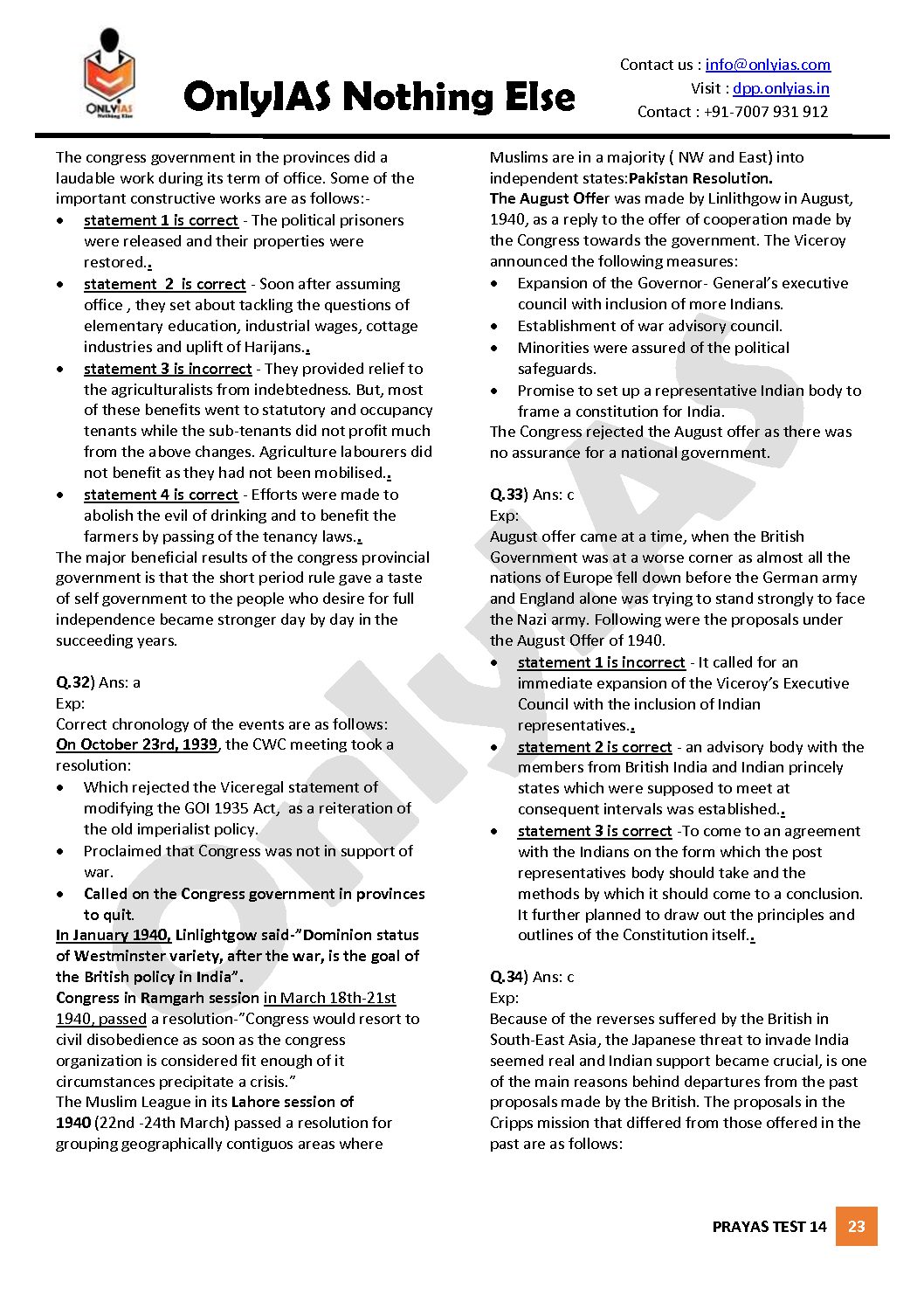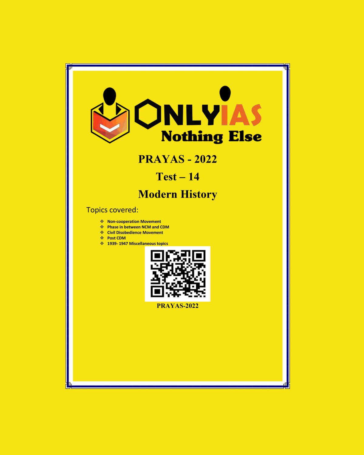 / ONLYIAS 2022 PRAYAS TEST -14 (MODERN HISTORY) (BLACK & WHITE)