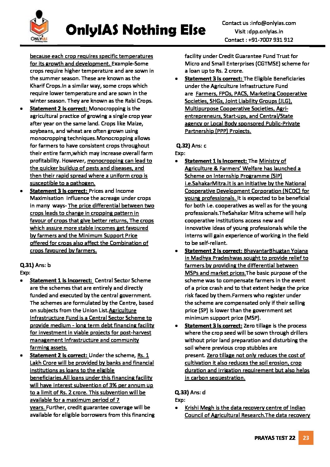 / ONLYIAS 2022 PRAYAS TEST -22 (INDIAN ECONOMY) (BLACK & WHITE)