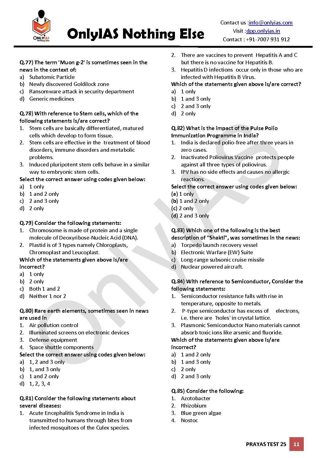 SHANKARIAS PT TEST 26 SCIENCE & TECH CURRENT AFFAIR APRIL 2021