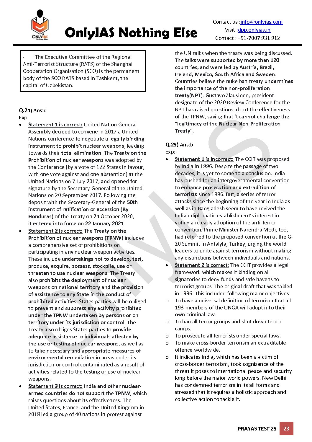 / ONLYIAS 2022 PRAYAS TEST -25 (INTERNATIONAL RELATIONS) (BLACK & WHITE)