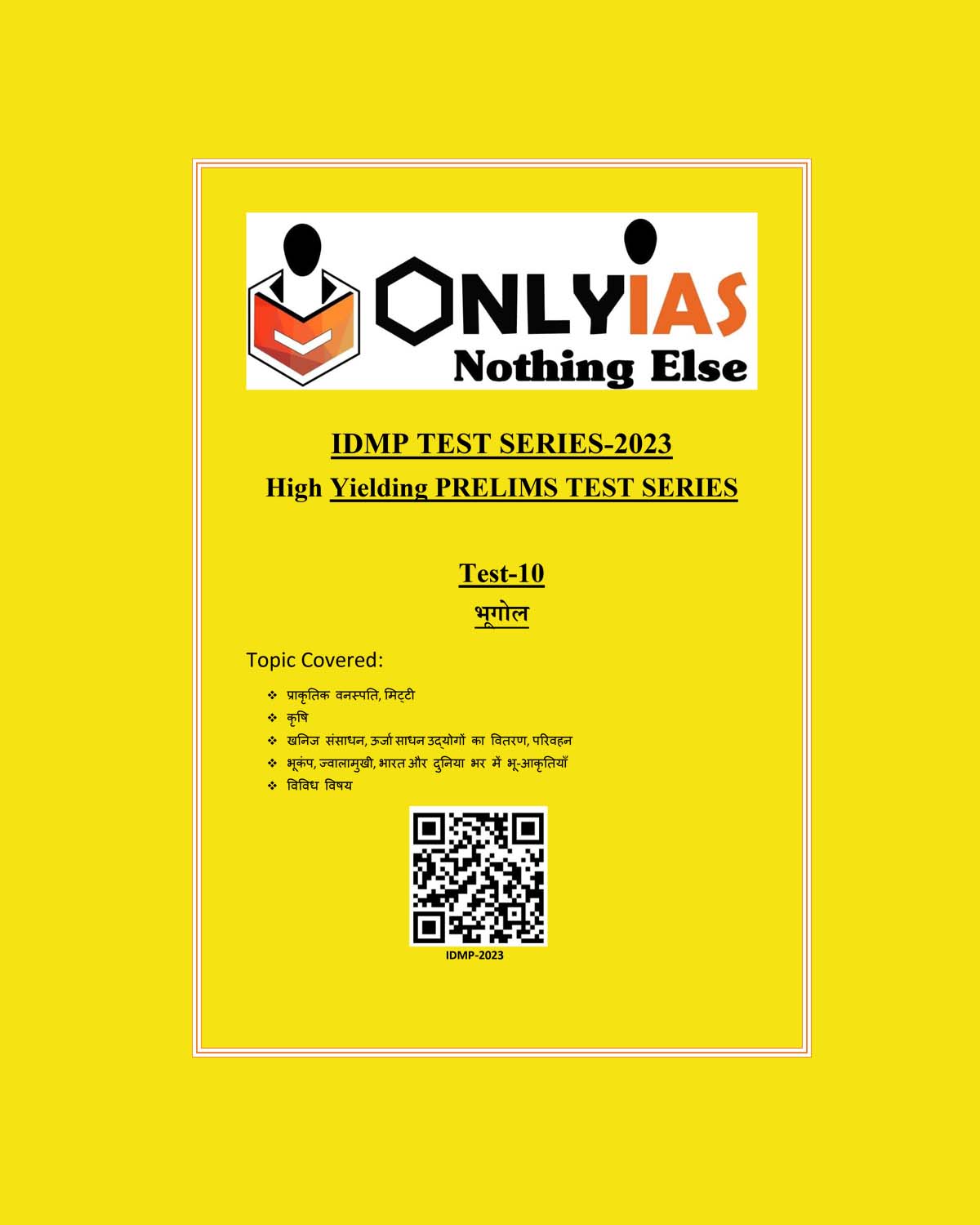 ONLYIAS HINDI 2023 IDMP TEST SERIES 2023 TEST-10 (भूगोल) HINDI MEDIUM (BLACK & WHITE)