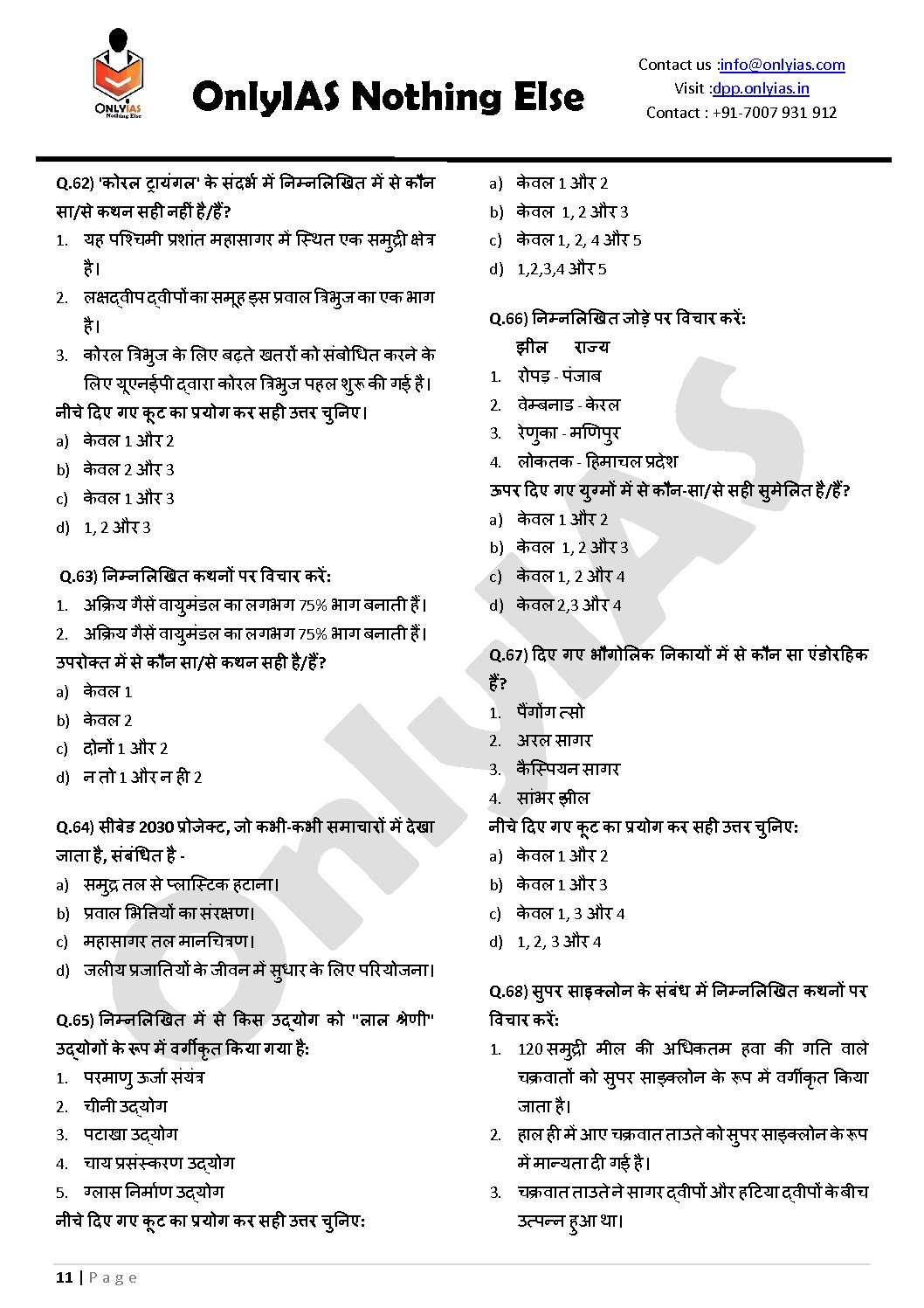 / ONLYIAS HINDI 2023 IDMP TEST SERIES 2023 TEST-11 (भूगोल/राजव्यवस्था) HINDI MEDIUM (BLACK & WHITE)