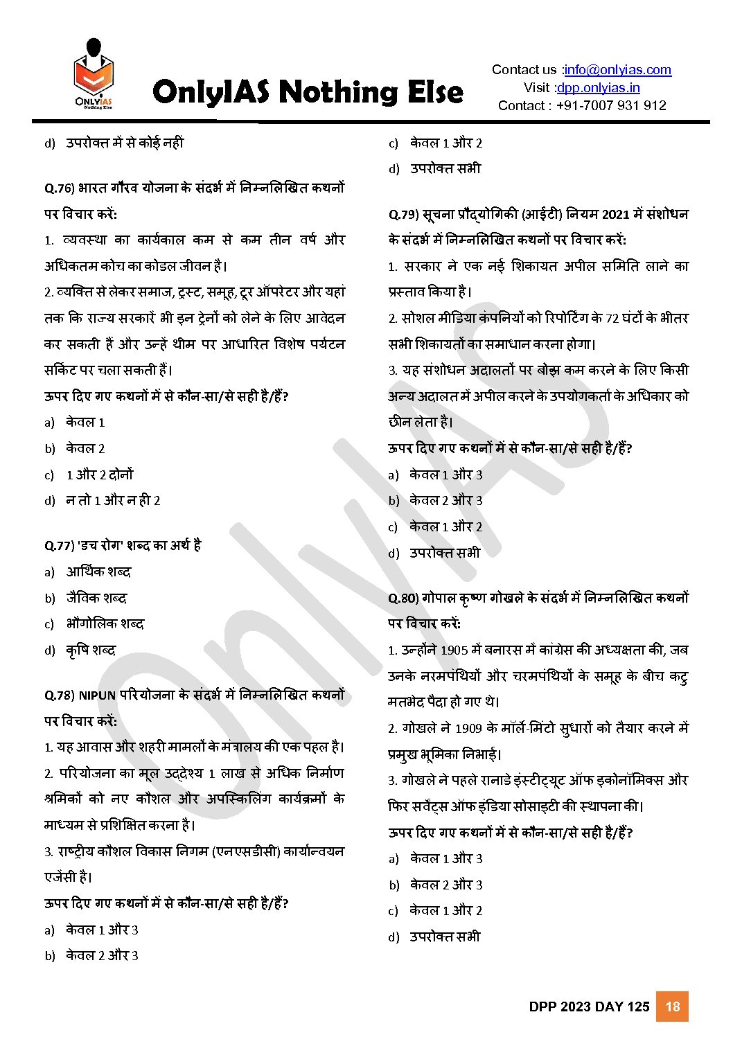 ONLYIAS HINDI 2023 IDMP TEST SERIES 2023 TEST-18 (भारतीय कला और वास्तुकला) HINDI MEDIUM (BLACK & WHITE)