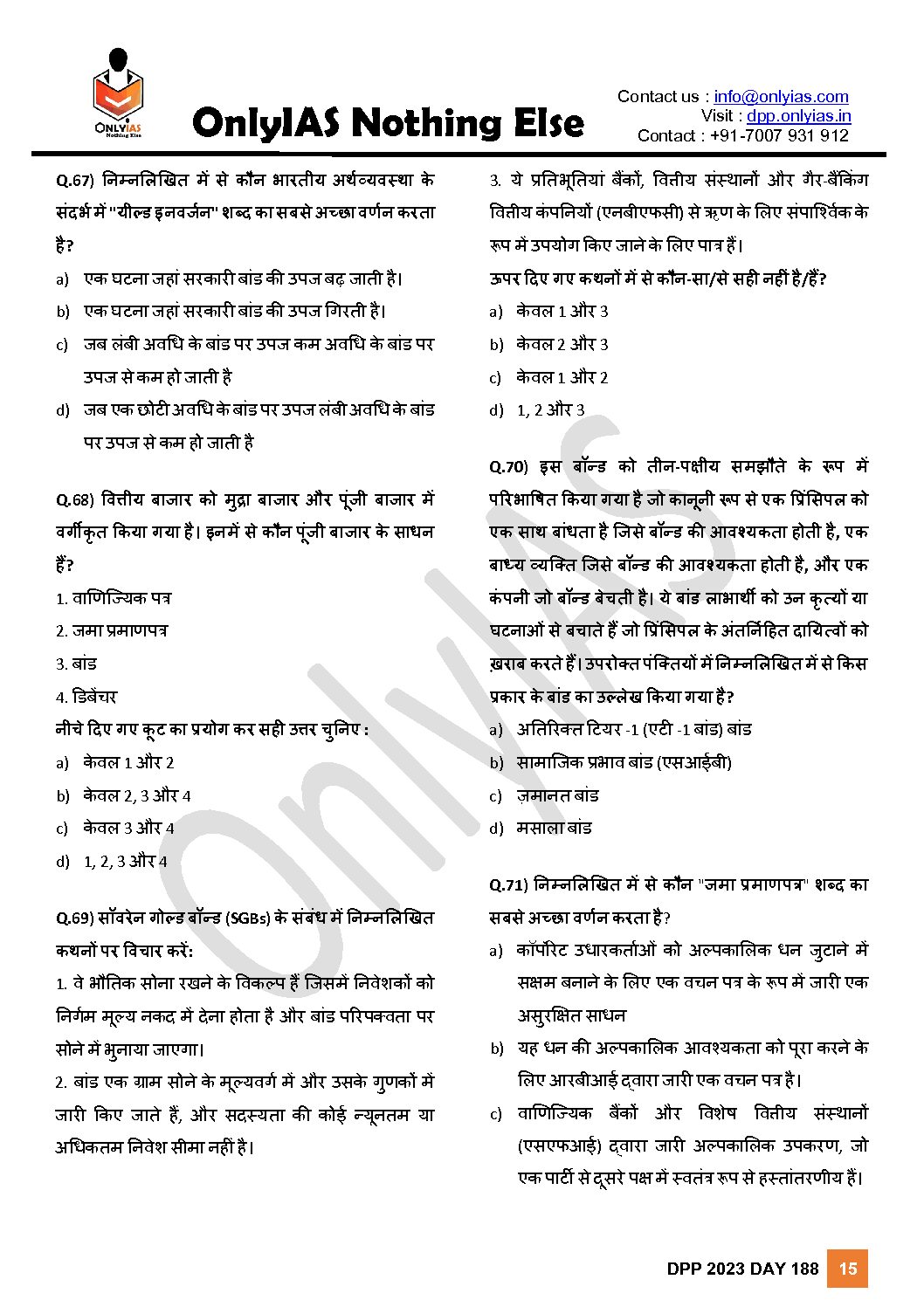 / ONLYIAS HINDI 2023 IDMP TEST SERIES 2023 TEST-27 (अर्थव्यवस्था) HINDI MEDIUM (BLACK & WHITE)