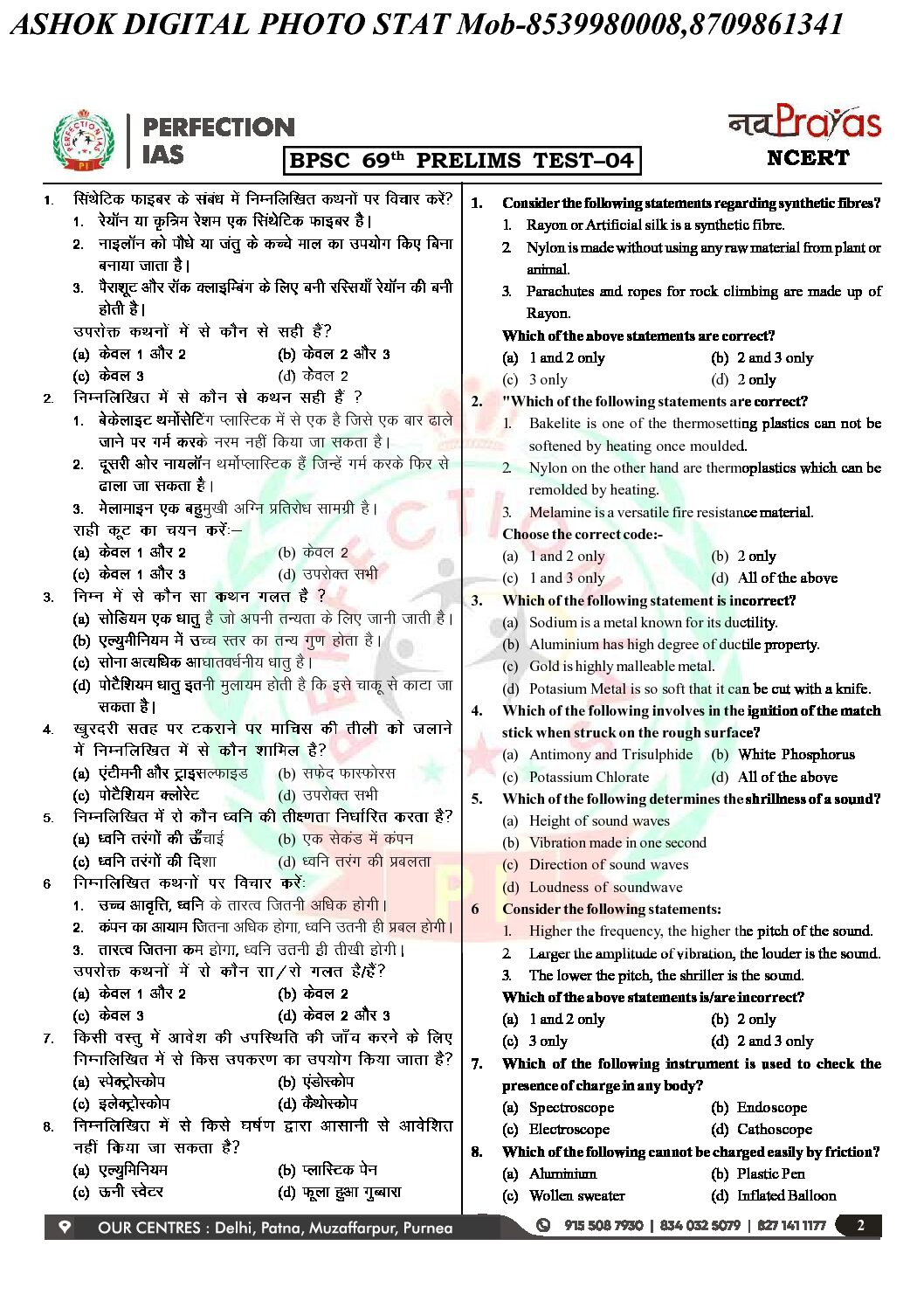 / PERFECTION IAS 69TH BPSC PRELIMS TEST-04 (PHYSICS + CHEMISTRY) 2024 BILINGUAL (BLACK & WHITE)