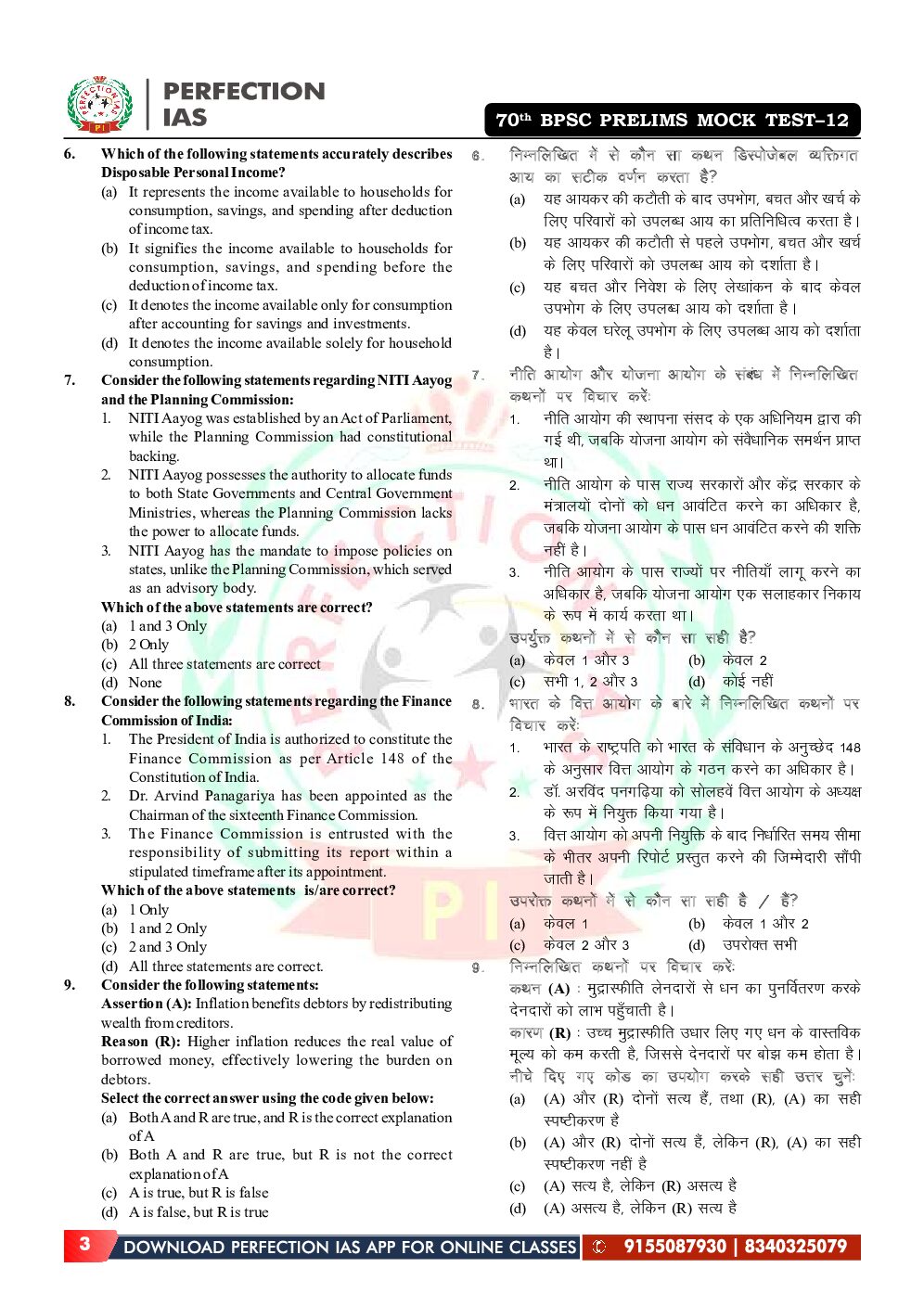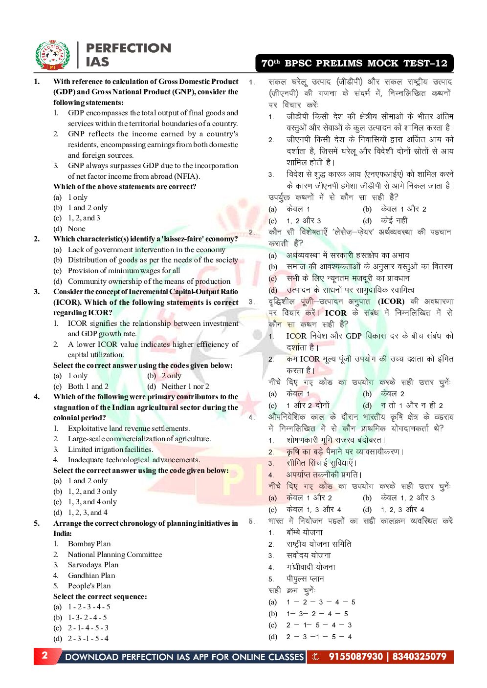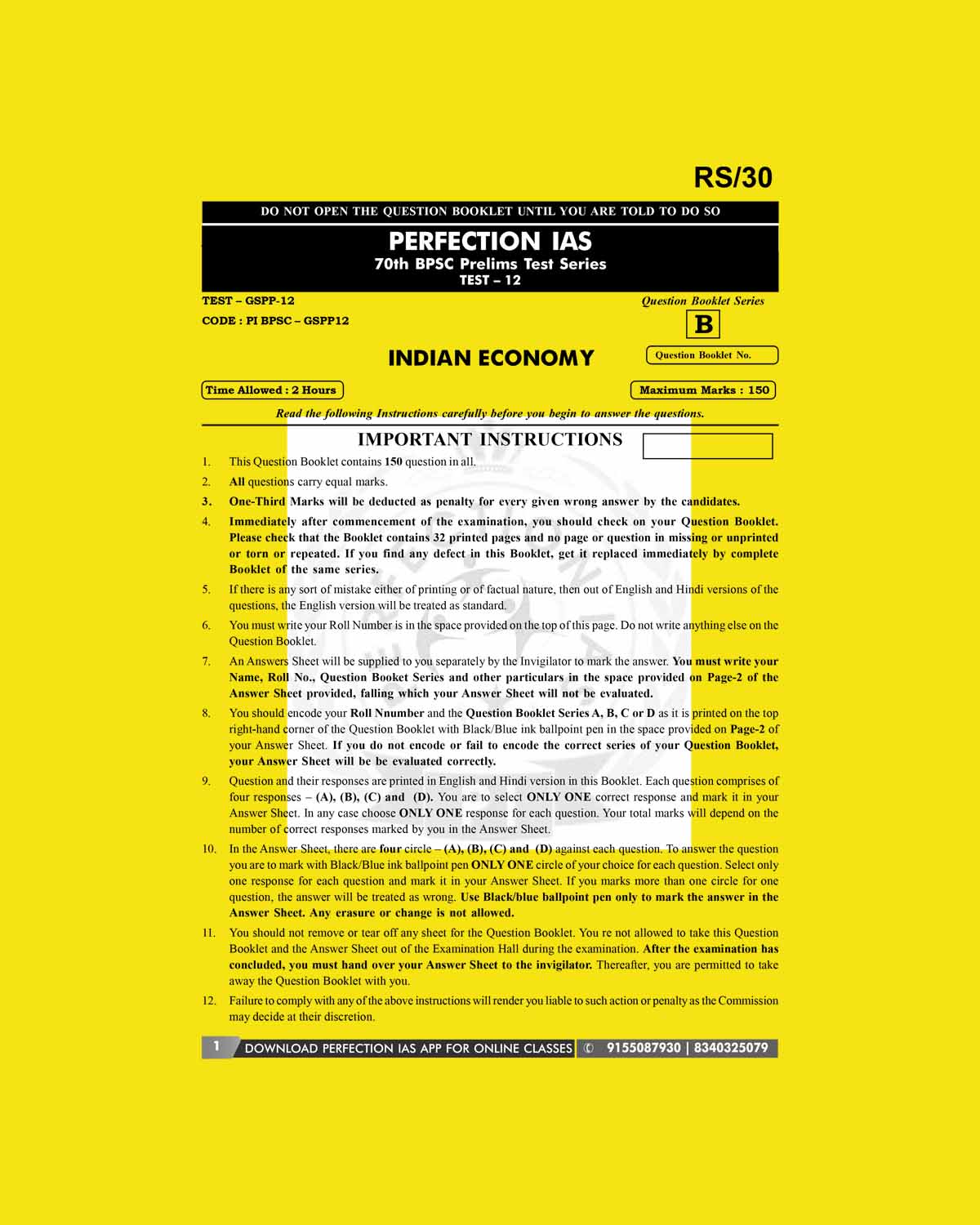 / PERFECTION IAS 70TH BPSC TEST-12 2024 FINAL (ECONOMY & BIHAR ECONOMIC SURVEY) (ENGLISH & HINDI) {BLACK AND WHITE}