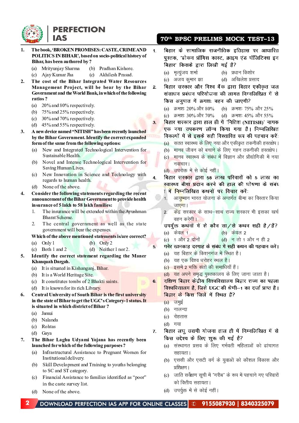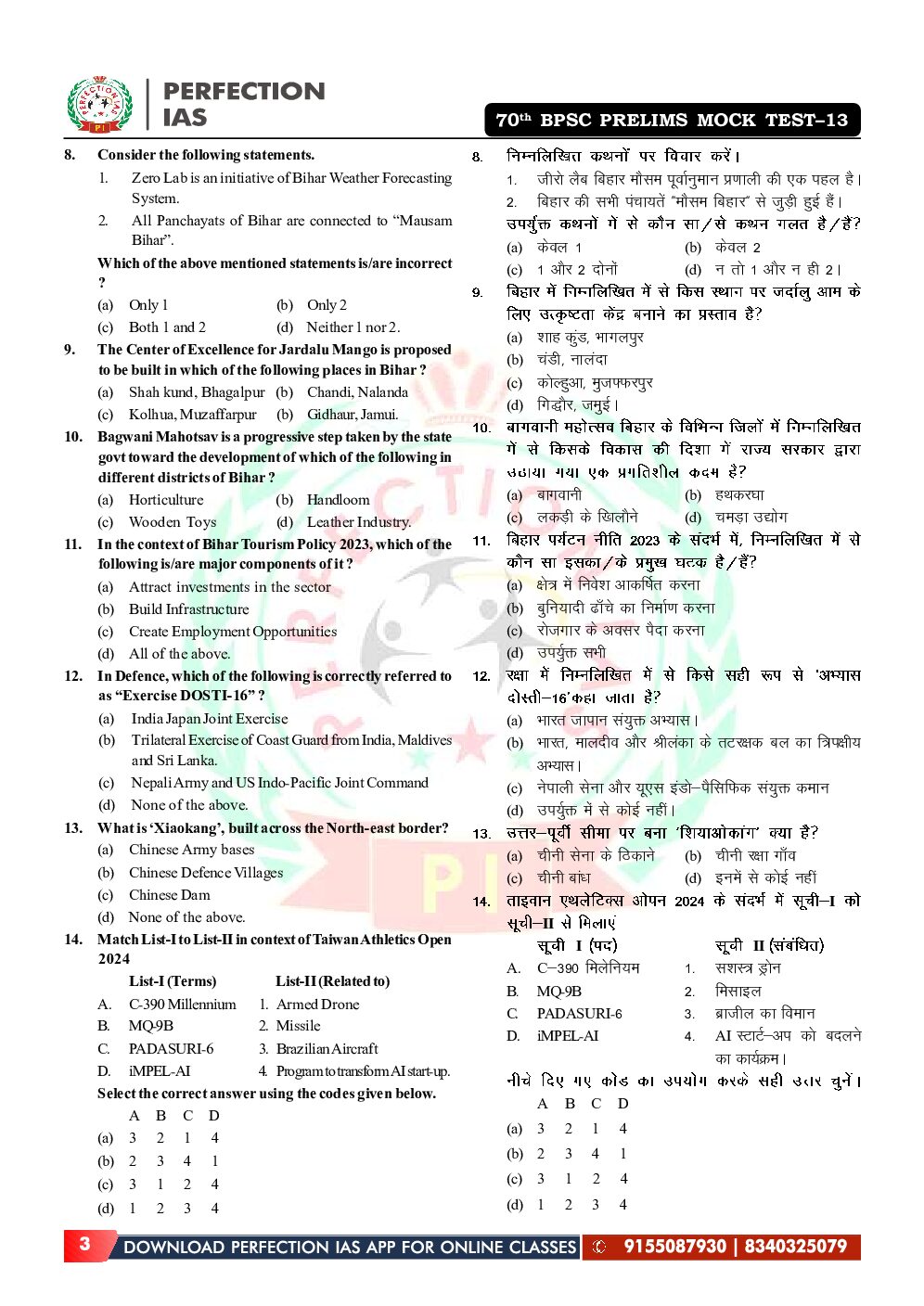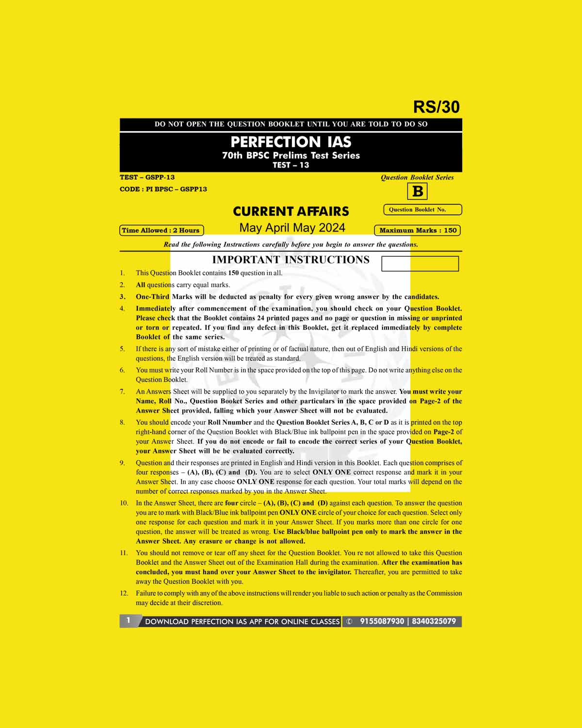 / PERFECTION IAS 70TH BPSC TEST-13 2024 FINAL (MARCH 2024 TO MAY 2024) (ENGLISH & HINDI) {BLACK AND WHITE}