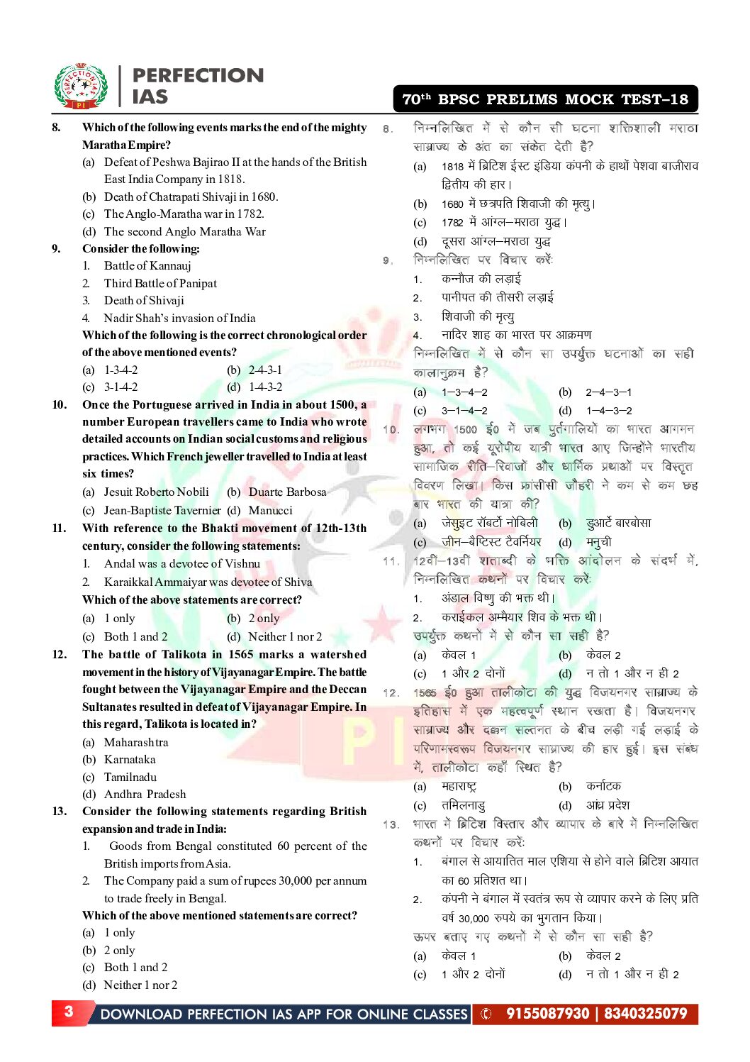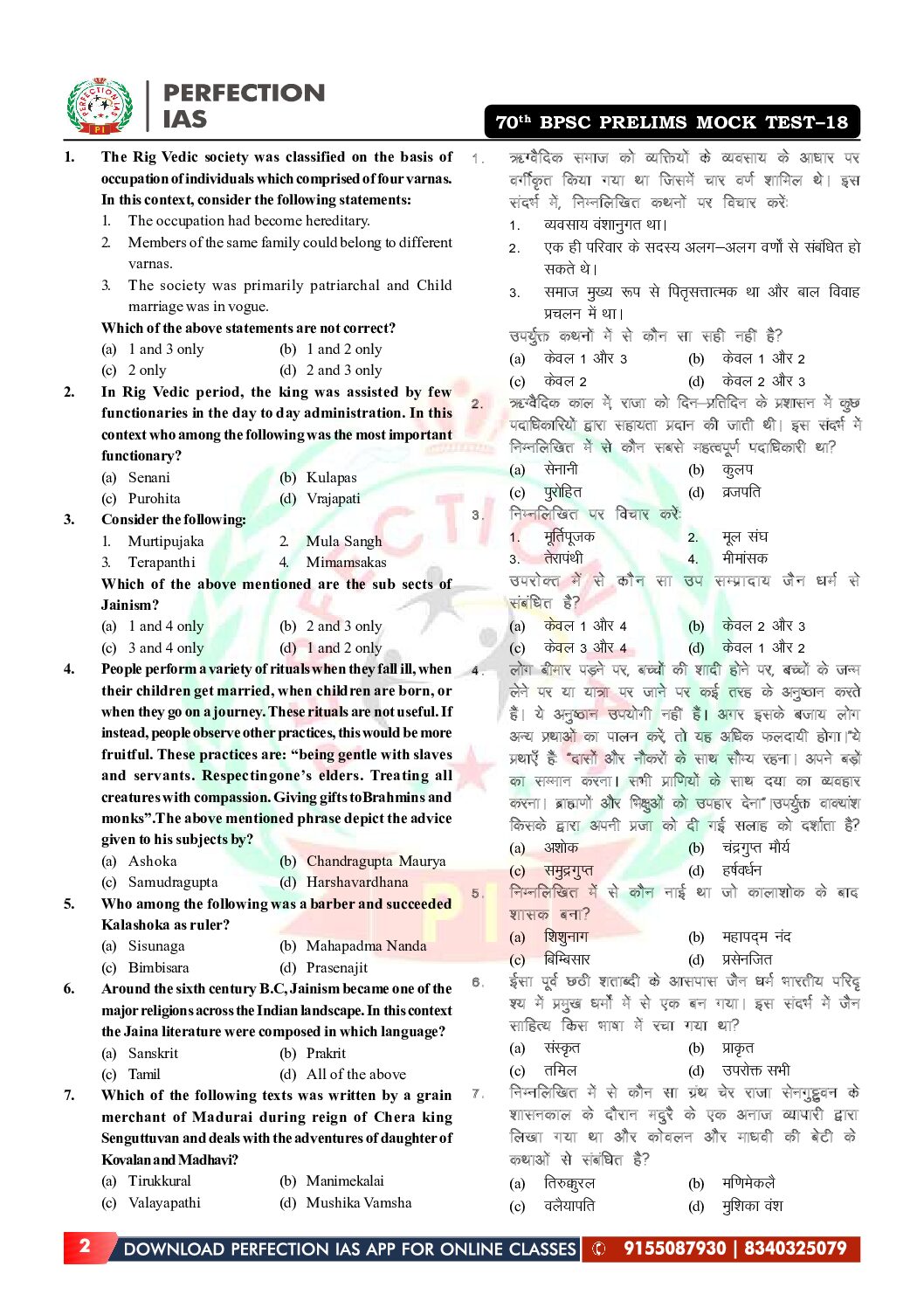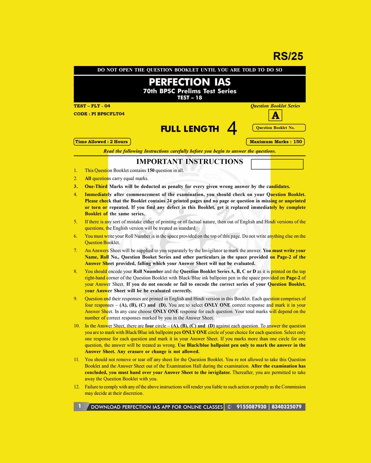 / PERFECTION IAS 70TH BPSC TEST-18 2024 FINAL (FULL LENGTH TEST-4) (ENGLISH & HINDI) {BLACK AND WHITE}