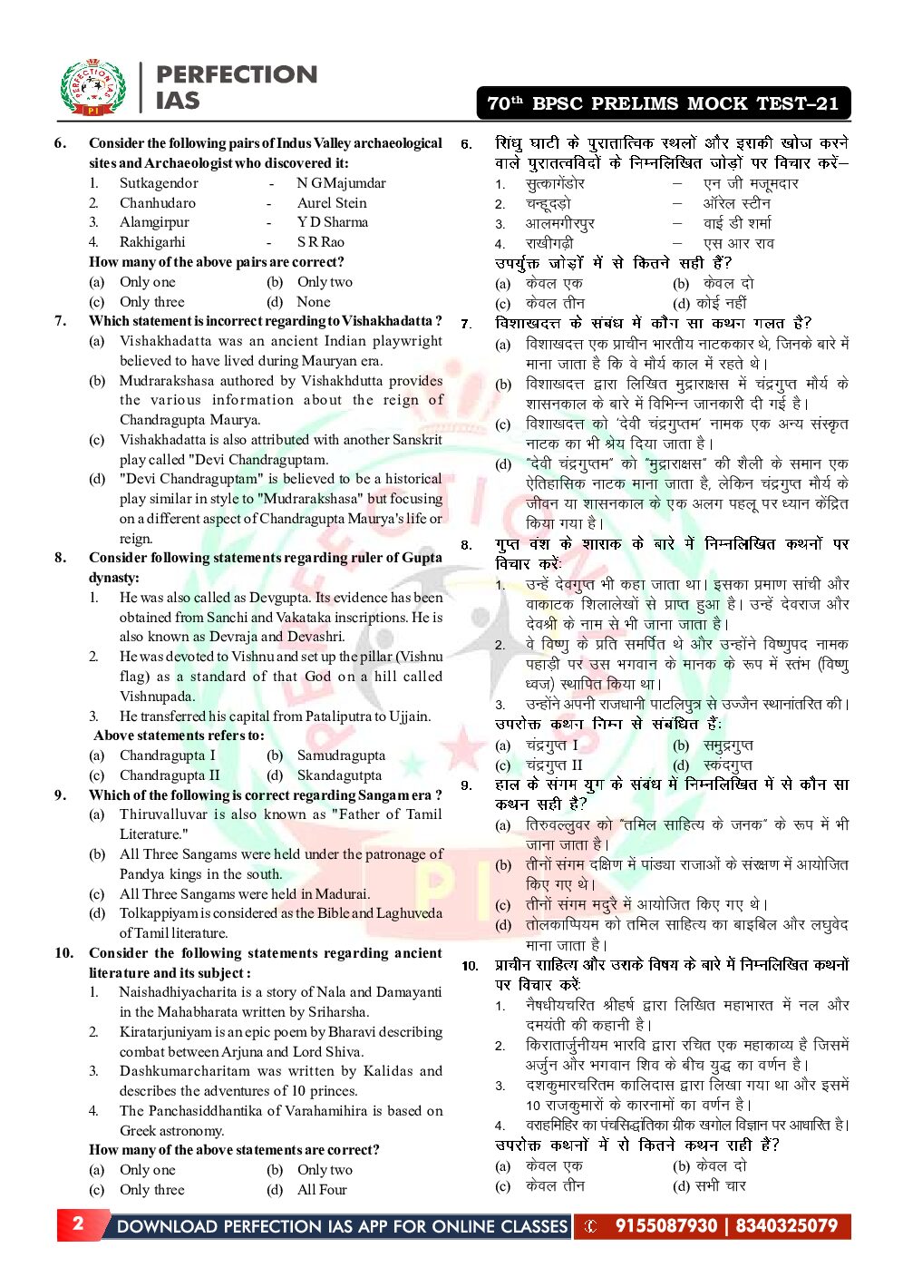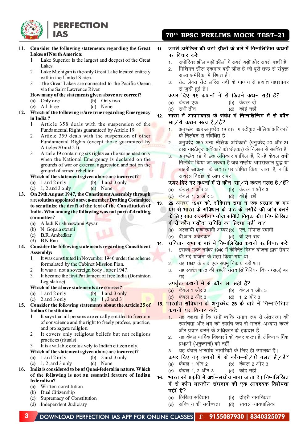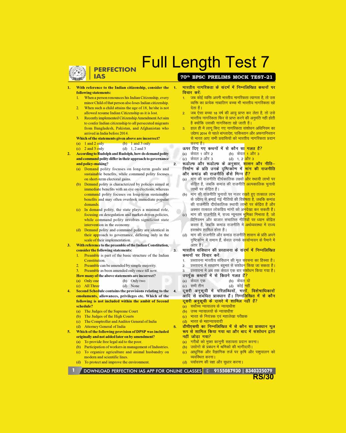 / PERFECTION IAS 70TH BPSC TEST-21 2024 FINAL (FULL LENGTH TEST-7) (ENGLISH & HINDI) {BLACK AND WHITE}