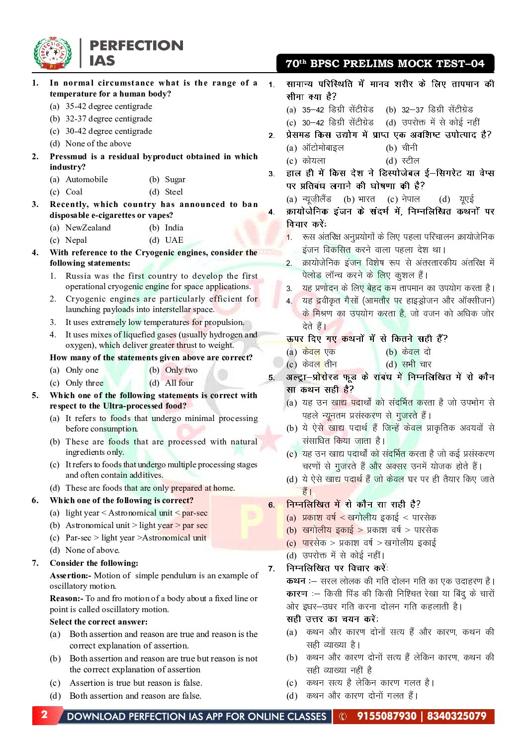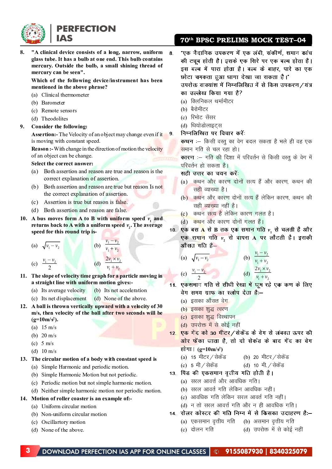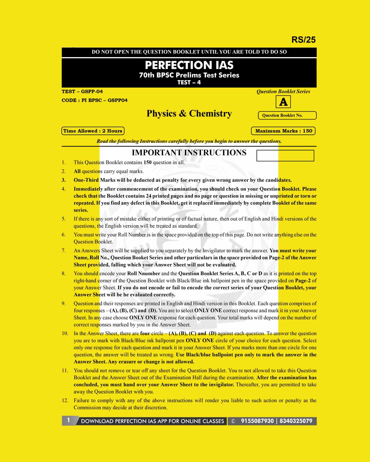 / PERFECTION IAS 70TH BPSC TEST-4 2024 FINAL (PHYSICS & CHEMISTRY) (ENGLISH & HINDI) {BLACK AND WHITE}