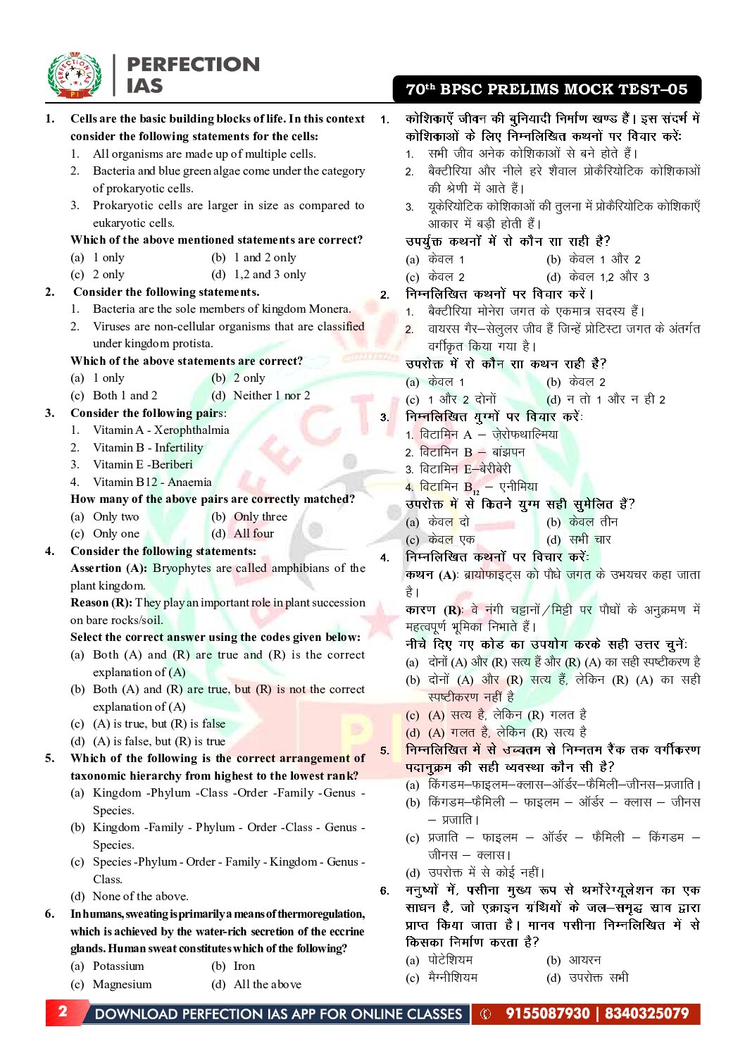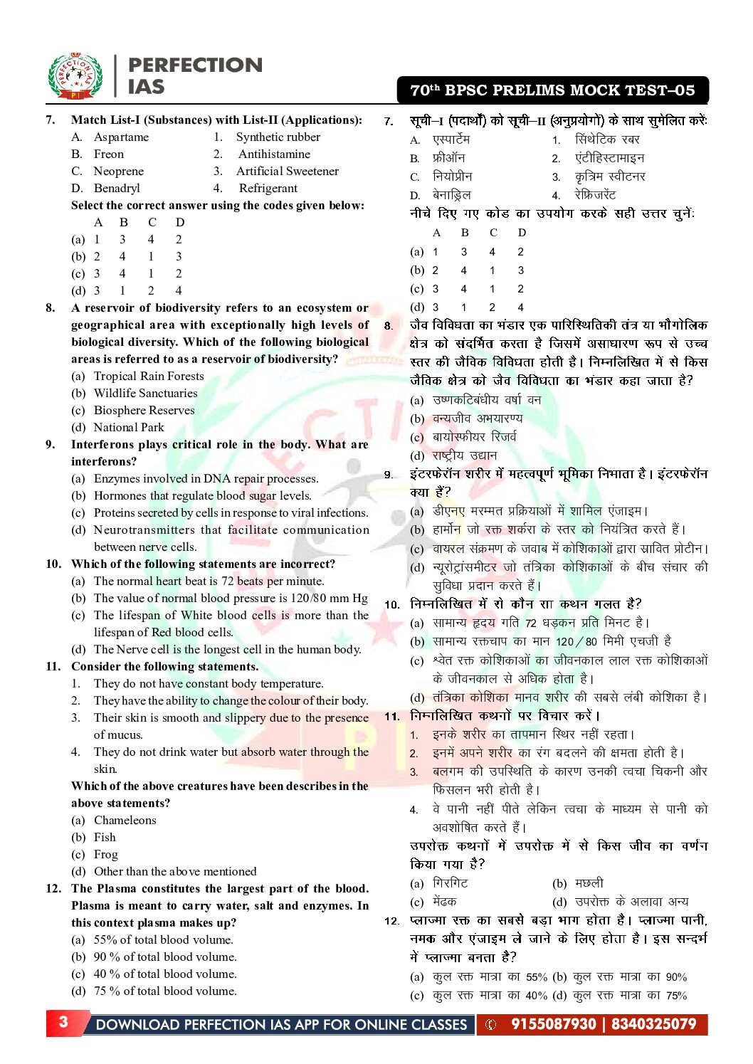 / PERFECTION IAS 70TH BPSC TEST-5 2024 FINAL (BIOLOGY & ENVIRONMENT) (ENGLISH & HINDI) {BLACK AND WHITE}