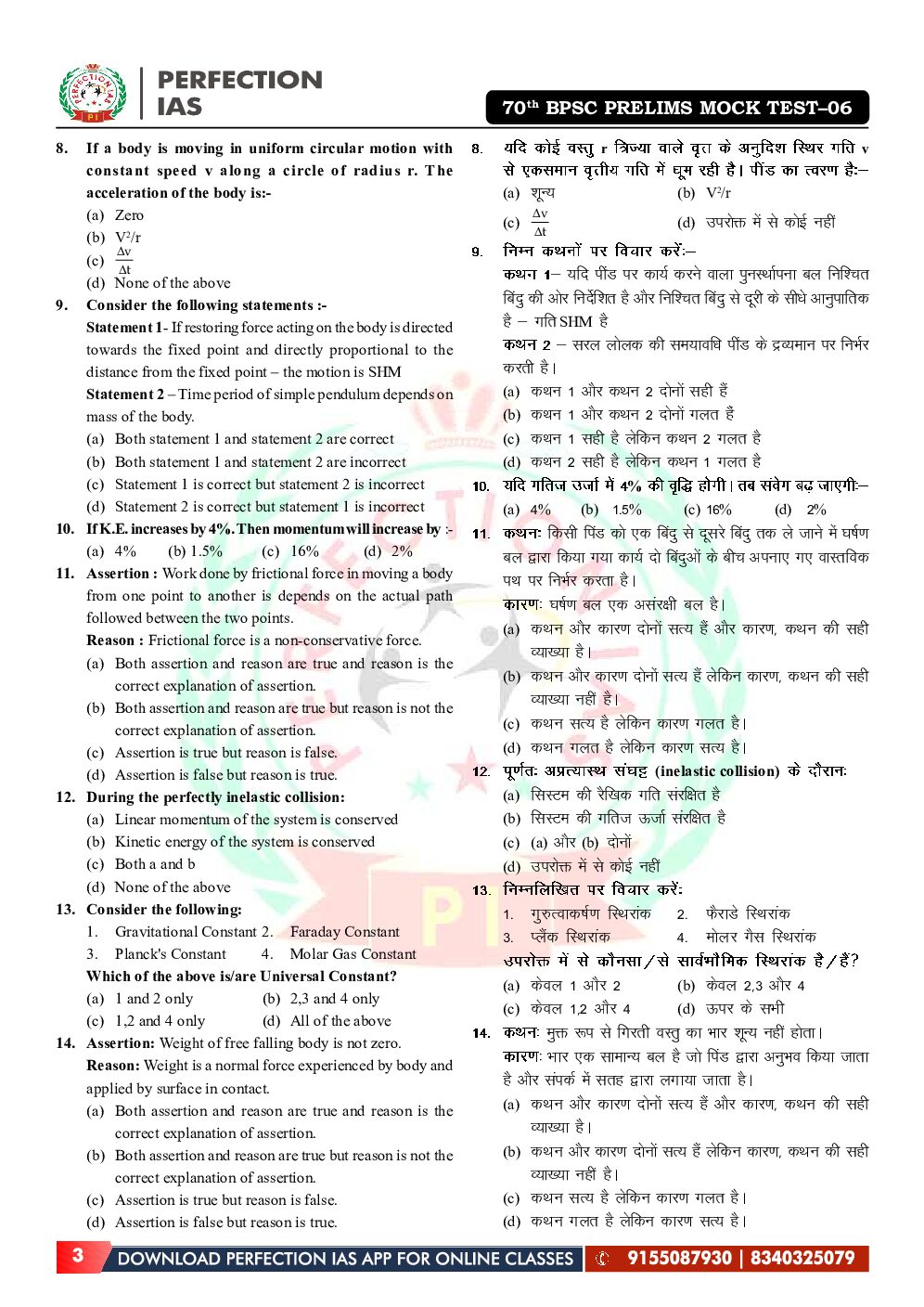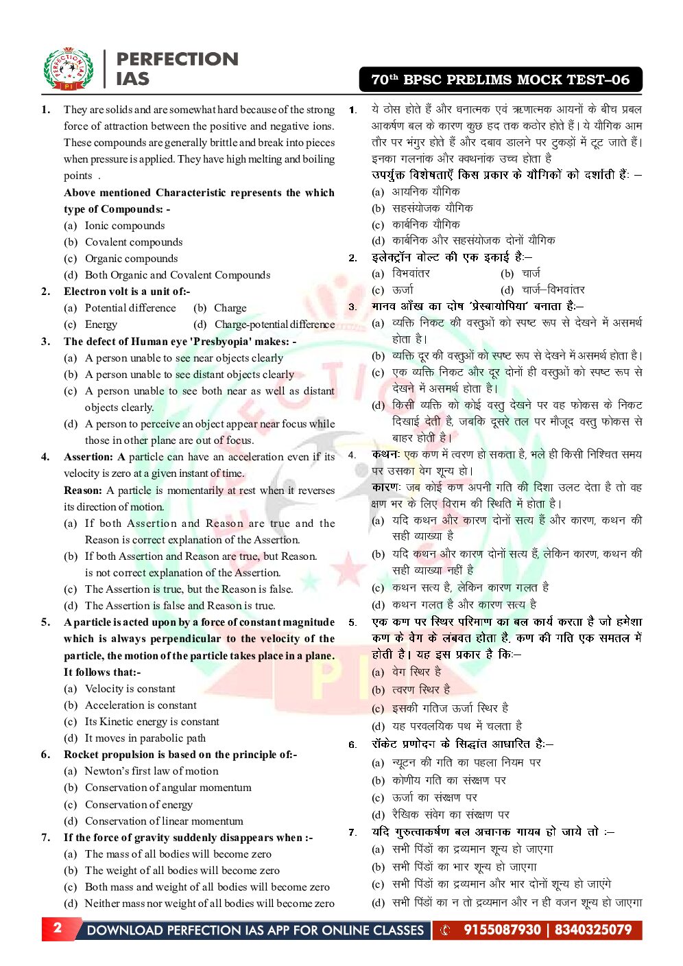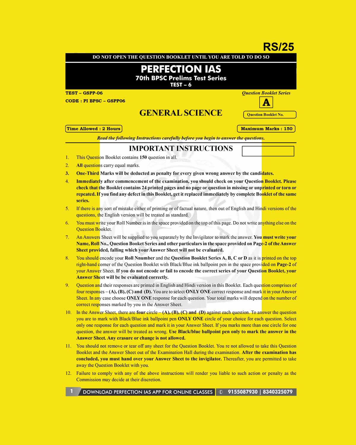 / PERFECTION IAS 70TH BPSC TEST-6 2024 FINAL (GENERAL SCIENCE) (ENGLISH & HINDI) {BLACK AND WHITE}