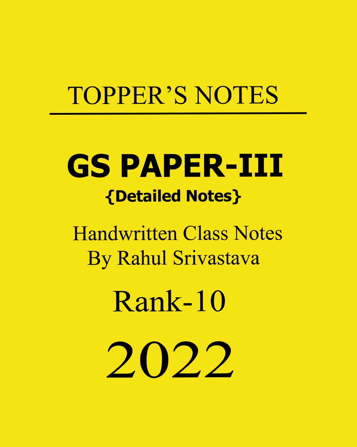 RAHUL SRIVASTAVA RANK-10 CSE 2022 GS PAPER-III (DETAILED NOTES) HANDWRITTEN TOPPERS NOTES CLASS NOTES ENGLISH MEDIUM (BLACK & WHITE)