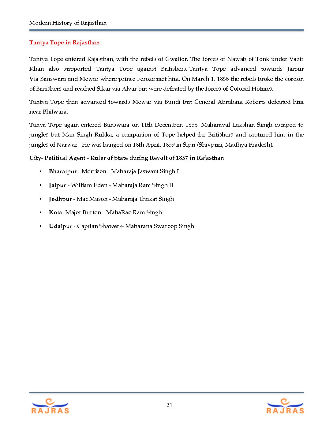 RAJASTHAN – MODERN HISTORY – (1707 – 1947) – A SUMMARY BOOK BY RAJRAS – RAS EXAM EDITION