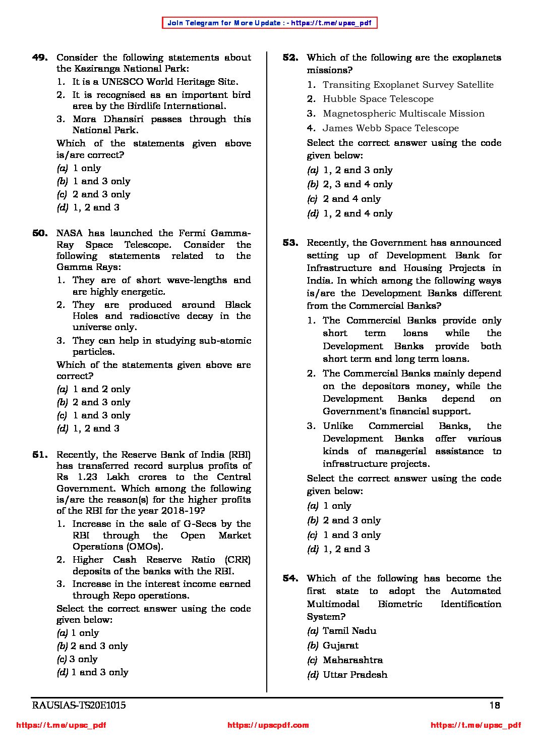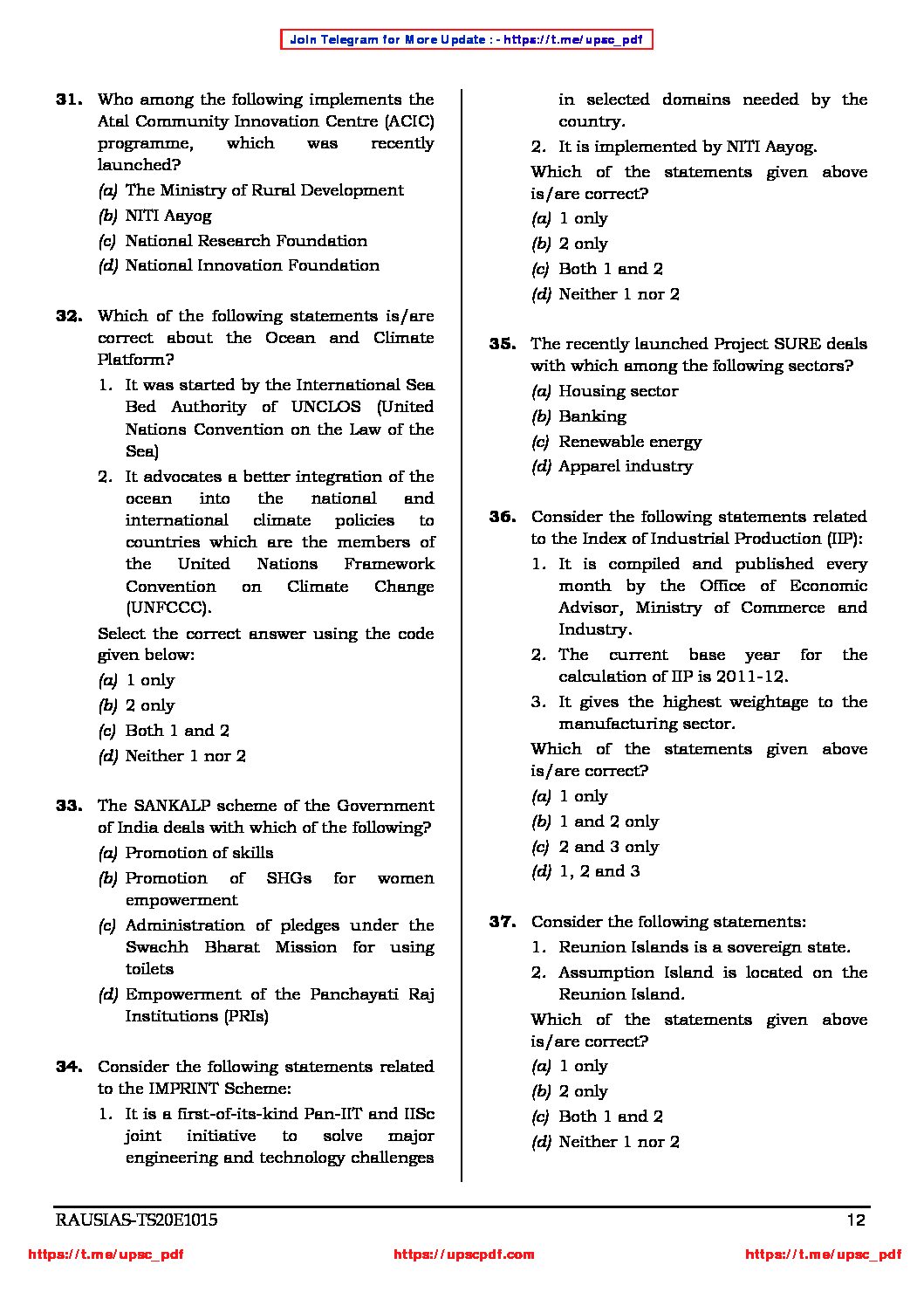 RANU’S IAS TEST SERIES PRE-2020 (CURRENT AFFAIRS SEPTEMBER 2019 )