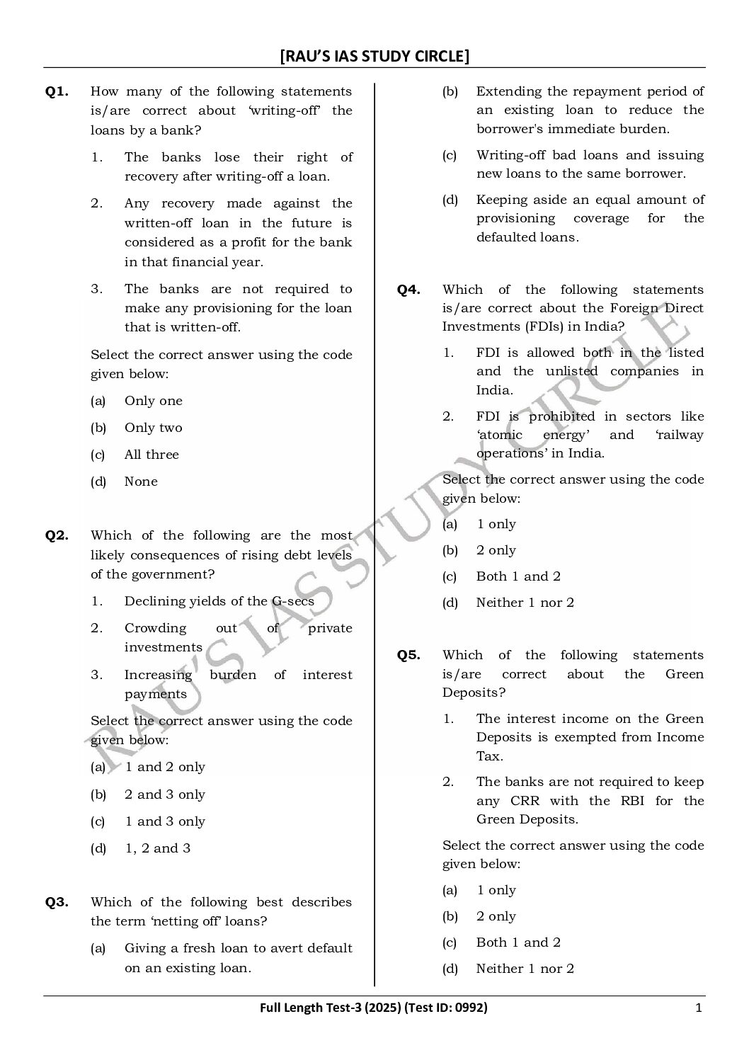/ RAU,IAS 2025 TEST-38 GS FULL LENGTH TEST-3 2025 FINAL (ENGLISH) {BLACK AND WHITE}