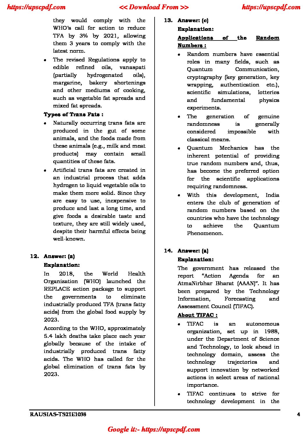 RAU’IAS (TEST – 38) CURRENT AFFAIRS TEST SERIES PRELIMS 2021