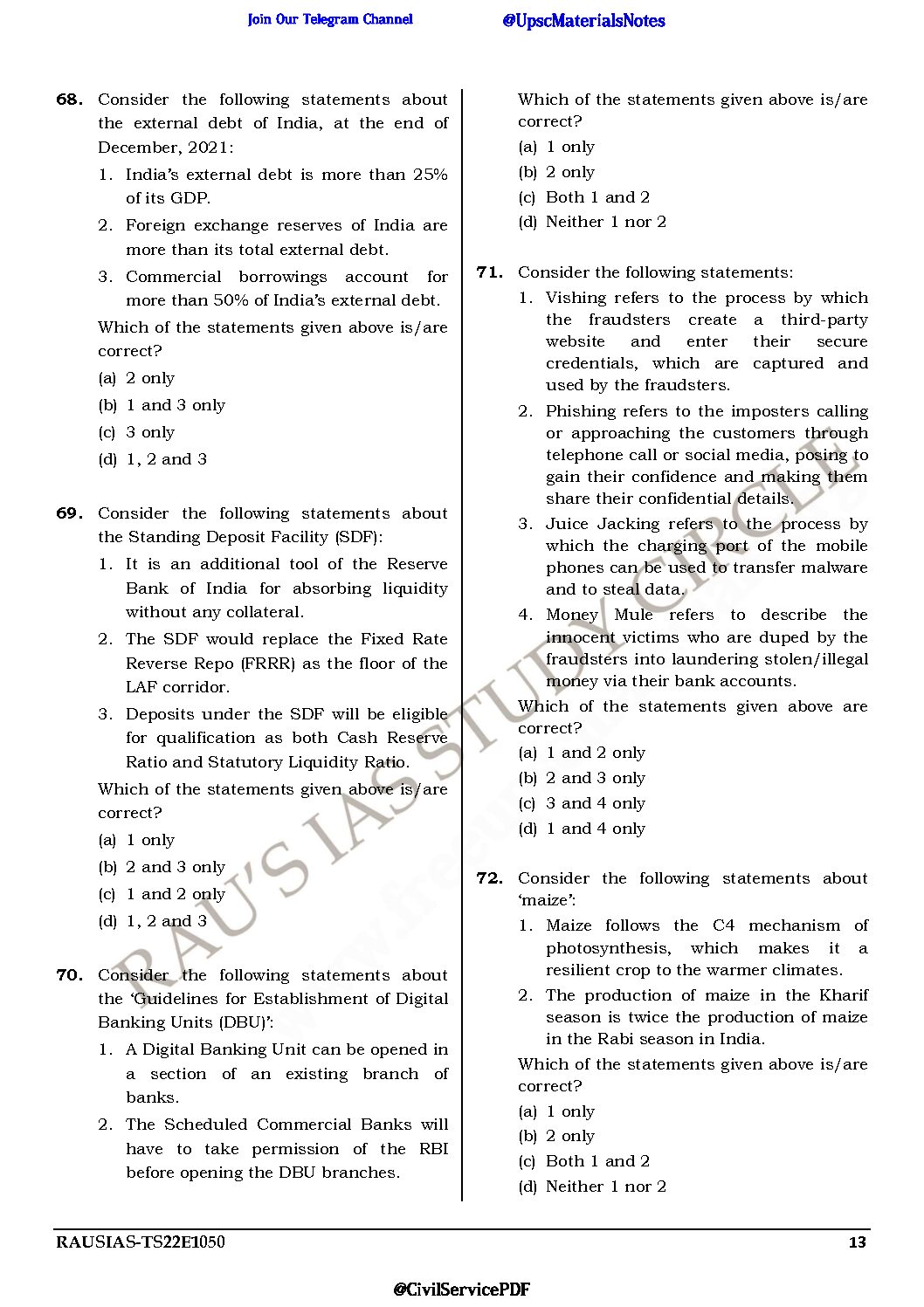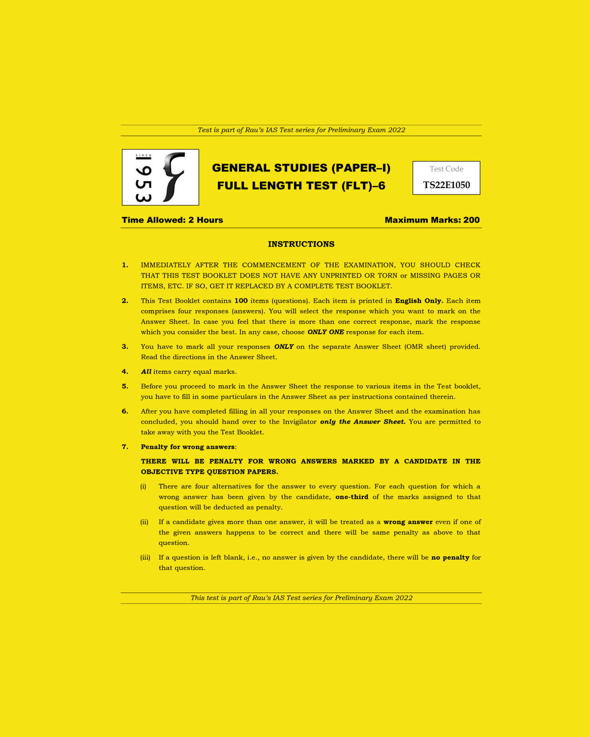 / RAU’S IAS 2022 GENERAL STUDIES TEST-48 (FULL LENGTH TEST -6) (BLACK & WHITE)