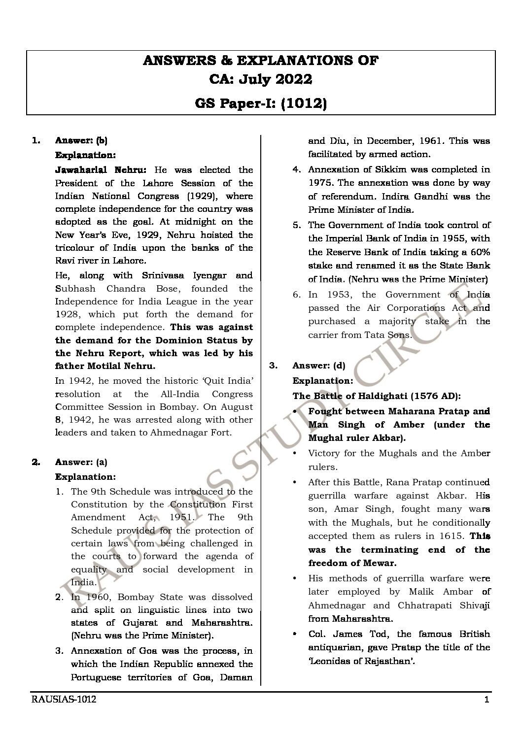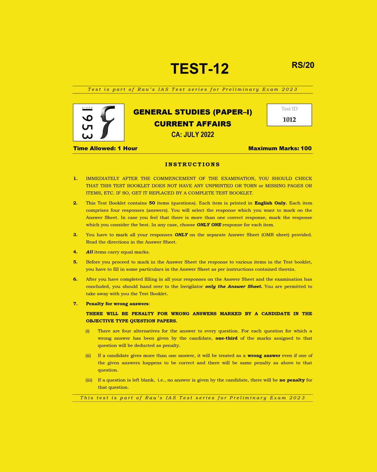 RAU’S IAS 2023 TEST-12 GS PAPER-1 CA JULY 2022 (BLACK & WHITE)