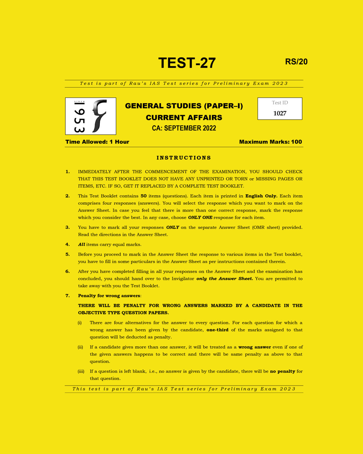 / RAU’S IAS 2023 TEST-27 GS PAPER-1 CURRENT AFFAIRS SEPTEMBER (BLACK & WHITE)