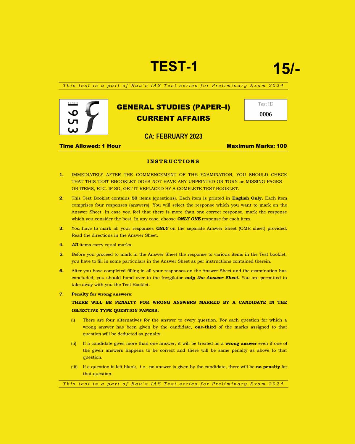 / RAU’S IAS 2024 TEST-01 (FEBRUARY 2023 CURRENT AFFAIRS) ENGLISH MEDIUM (BLACK & WHITE)