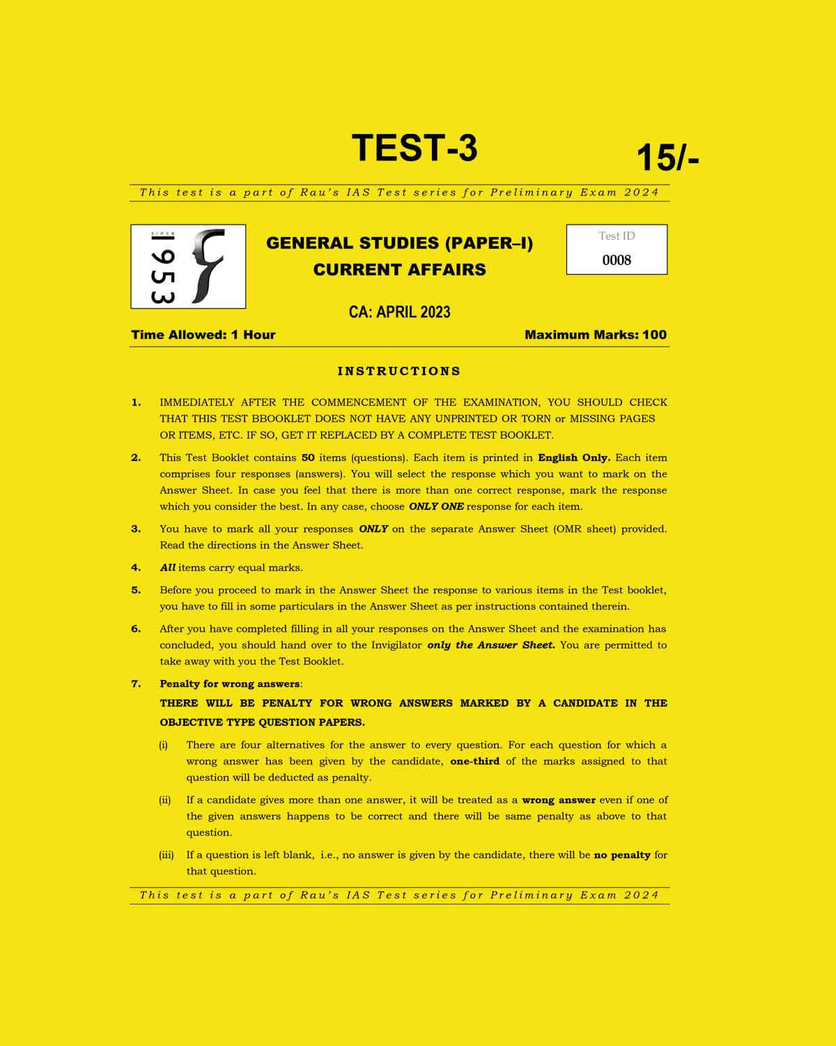 / RAU’S IAS 2024 TEST-03 (APRIL 2023 CURRENT AFFAIRS) ENGLISH MEDIUM (BLACK & WHITE)