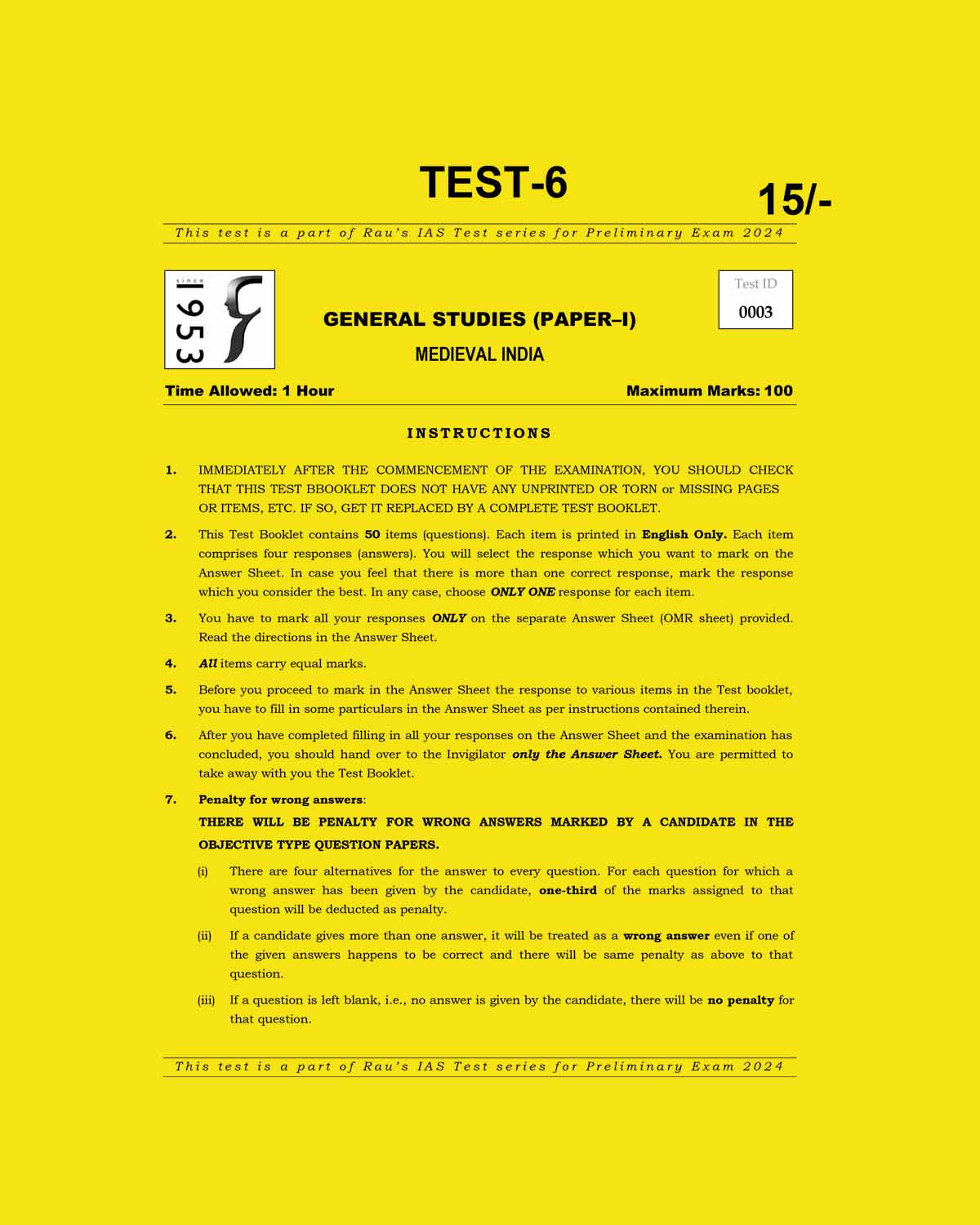 / RAU’S IAS 2024 TEST-06 (MEDIEVAL INDIA) ENGLISH MEDIUM (BLACK & WHITE)